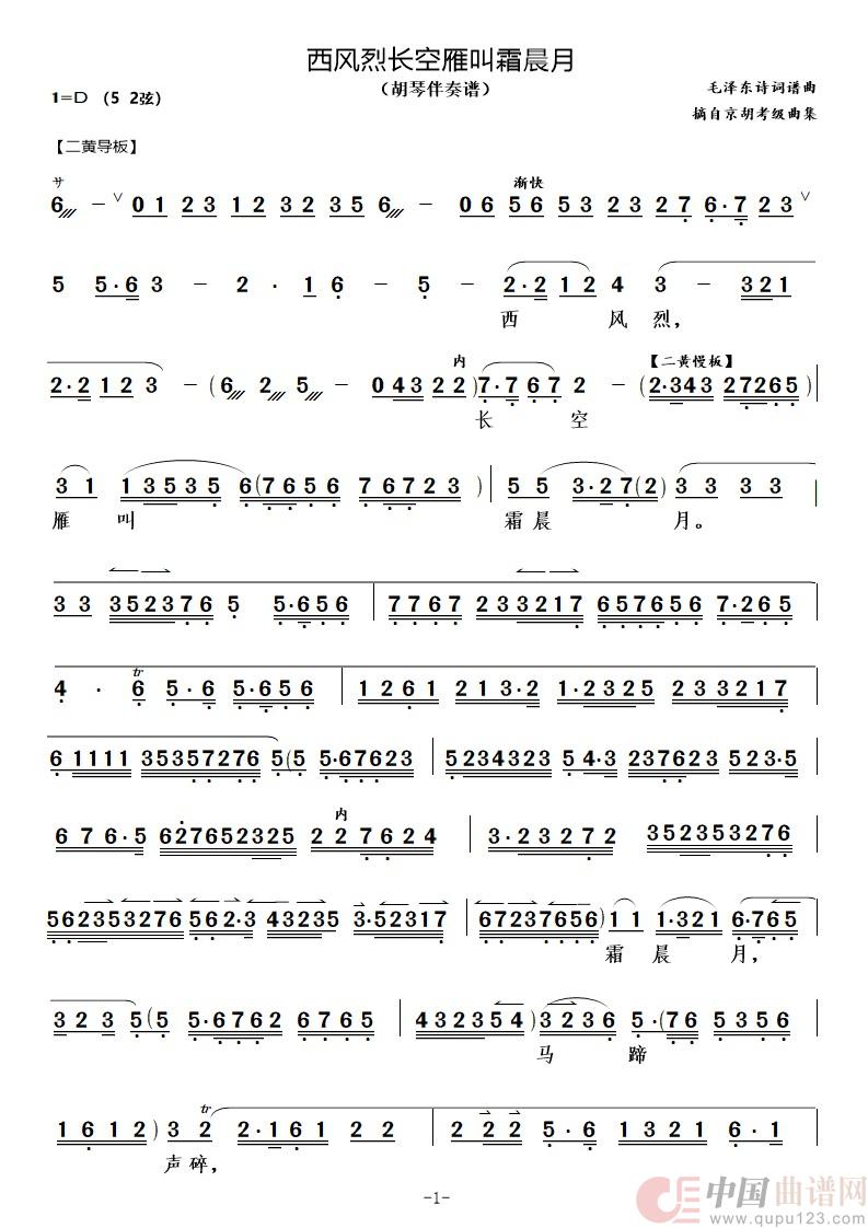 西风烈长空雁叫霜晨月(胡琴伴奏谱)