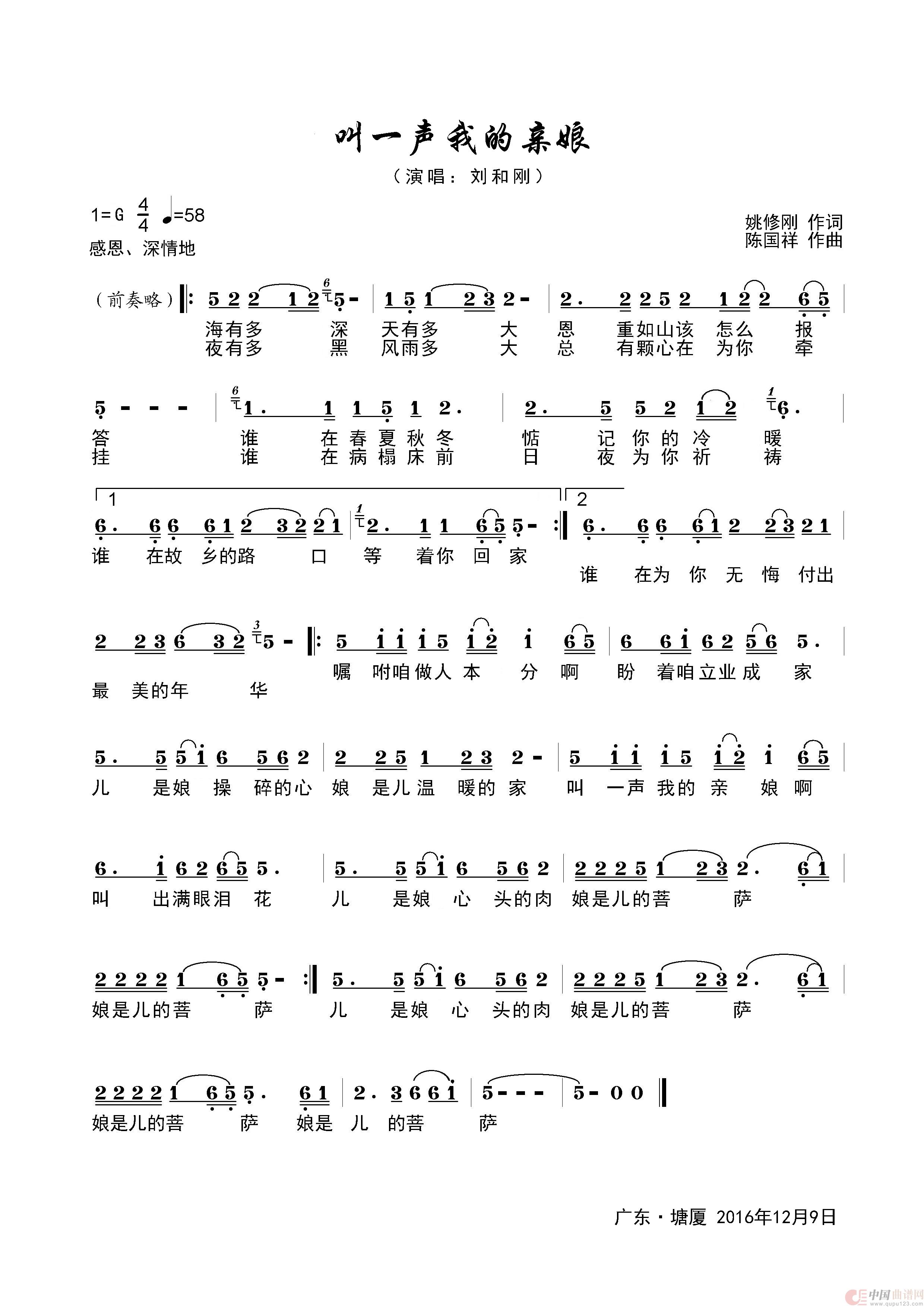 著名歌唱家刘和刚演唱的作品《叫一声我的亲娘》