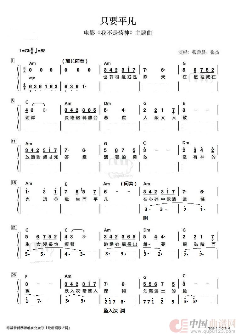 关于《《只要平凡》》曲谱的评论