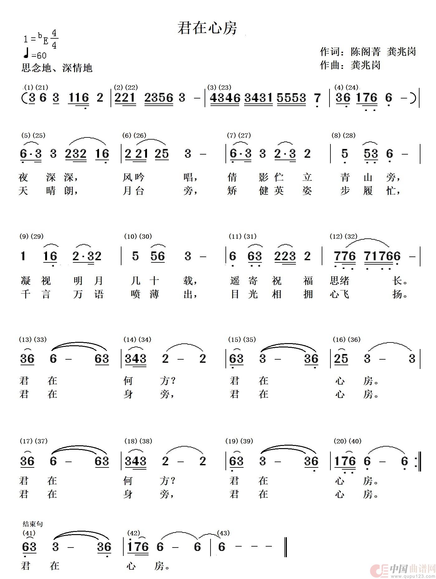关于《君在心房》曲谱的评论