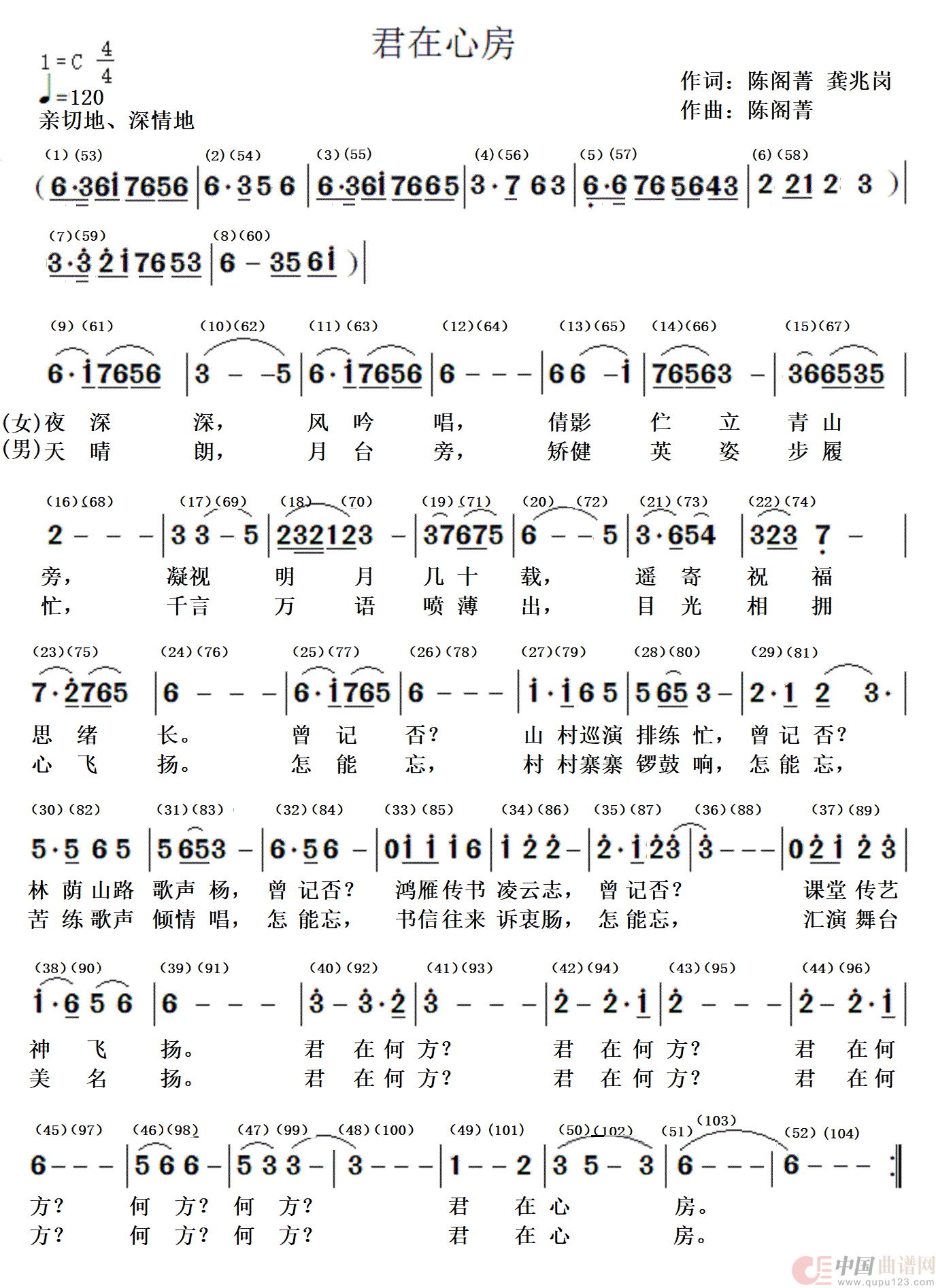 关于《君在心房》曲谱的评论