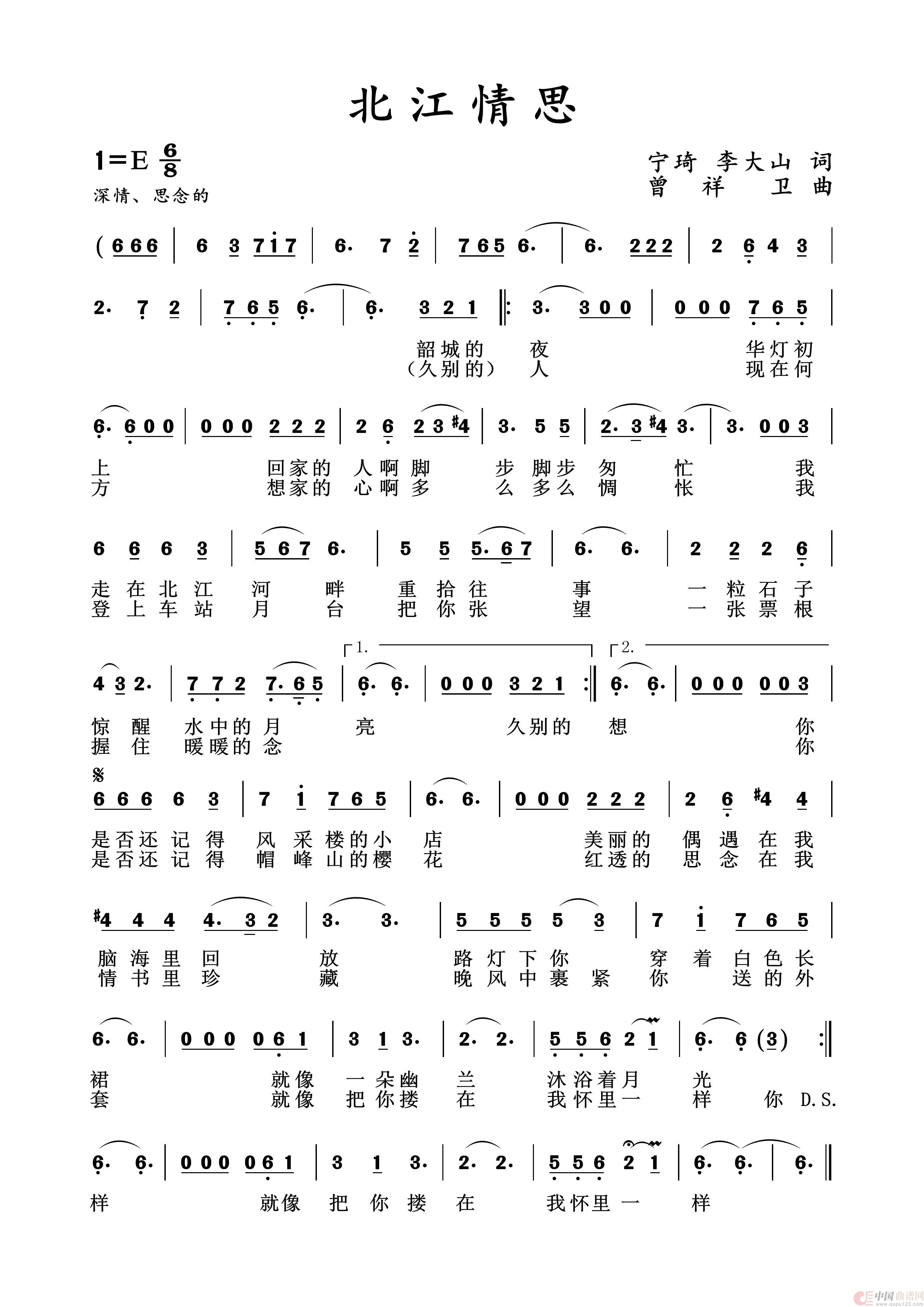 关于《北江情思》曲谱的评论