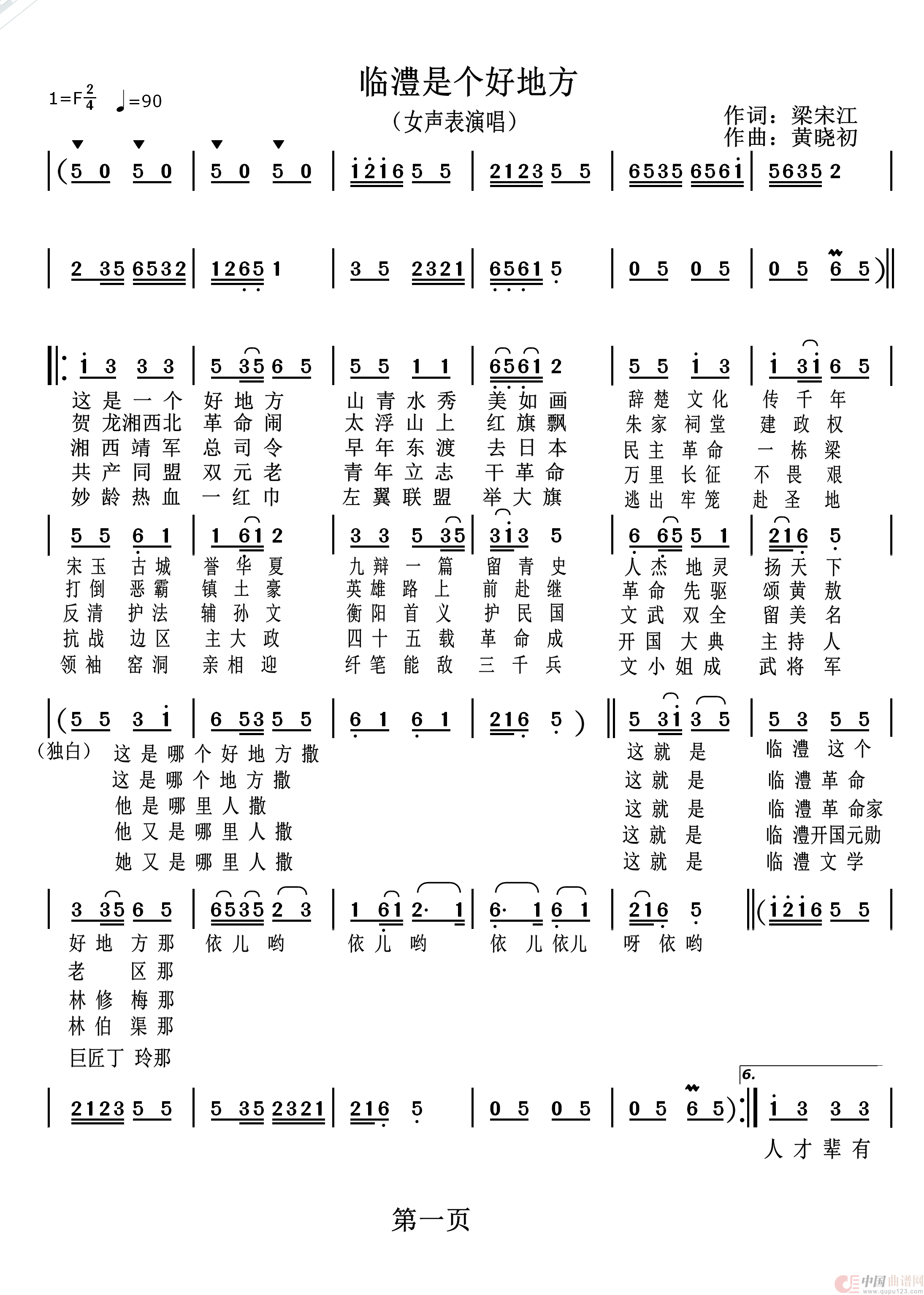 关于《临澧是个好地方》曲谱的评论