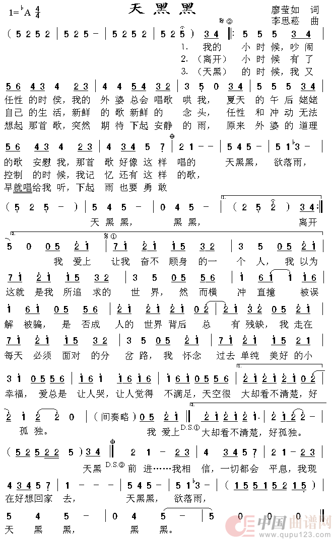 、《天黑黑》是由廖莹如填词,李偲菘谱曲,孙燕姿演唱的一首歌曲,收录于孙燕姿2000年发行的专辑《孙燕姿同名专辑》中。该歌曲获得第十二届台湾金曲奖最佳作曲人奖。这个录音是歌手周希怀翻唱录制的。