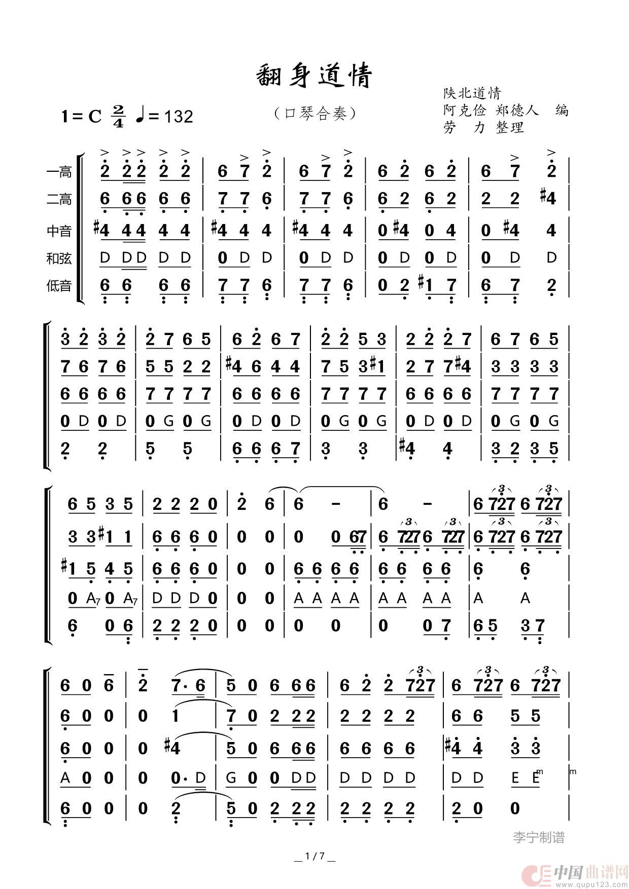 作曲:阿克俭、郑德人 来源:改编的口琴合奏谱 上传: 劳力1222