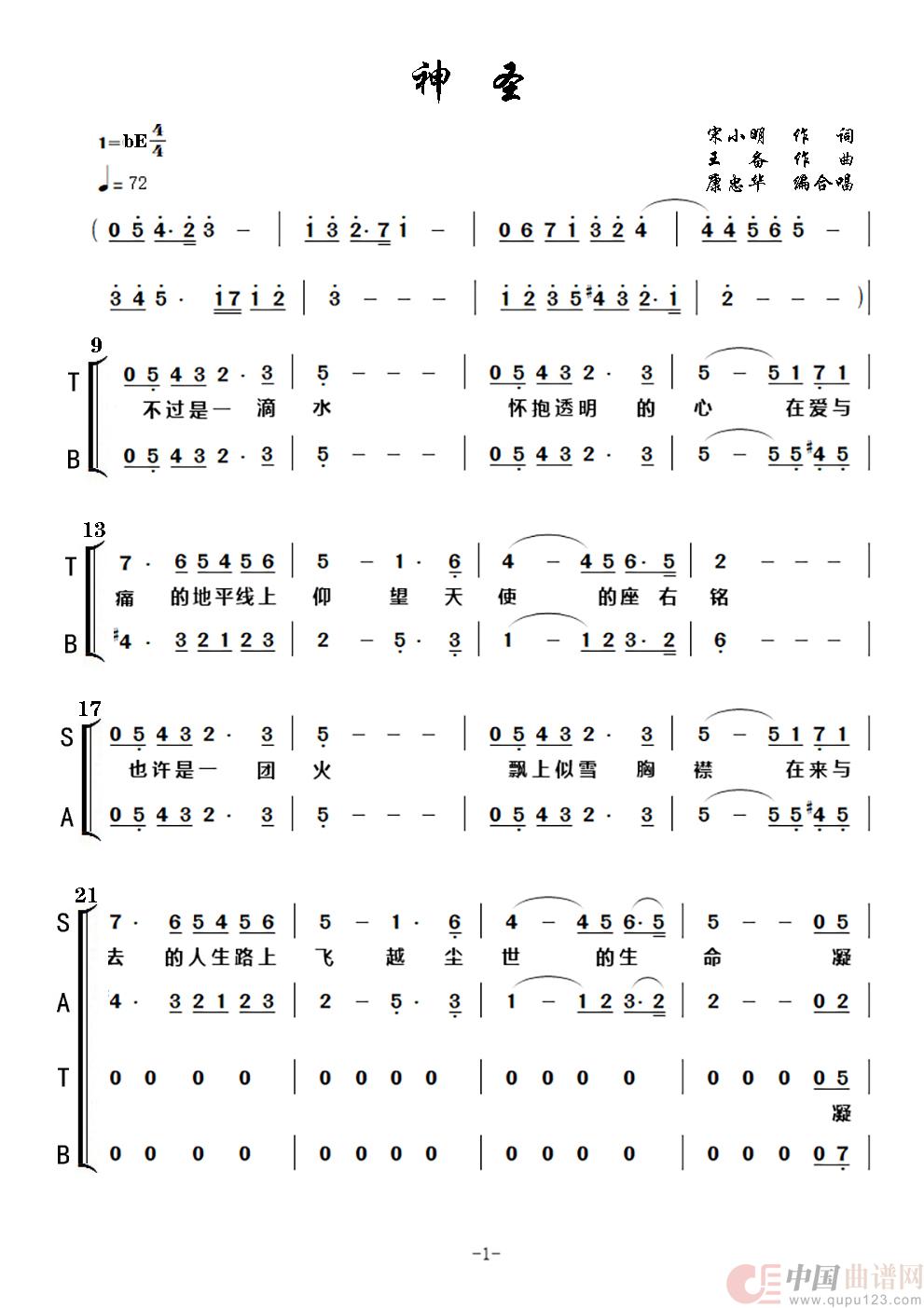 提示:在曲谱图片上单击右键,选择“图片另存为...”即可将曲谱保存到您的电脑中,打印时候可将图片插入到WORD中,调整合适大小打印即可。
