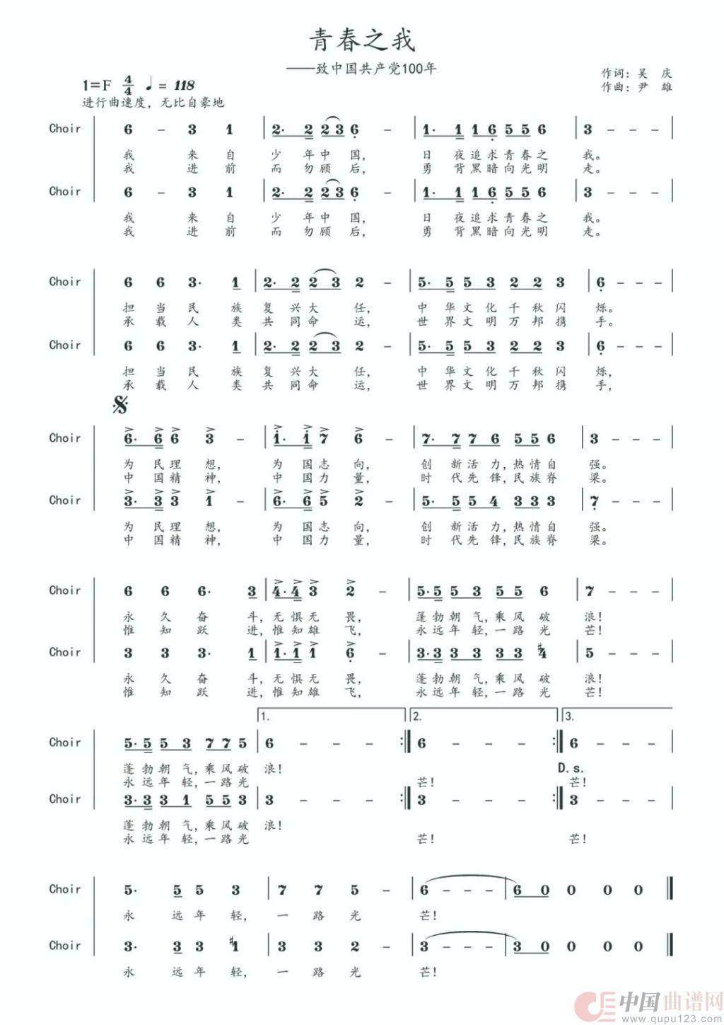 关于《青春之我》曲谱的评论