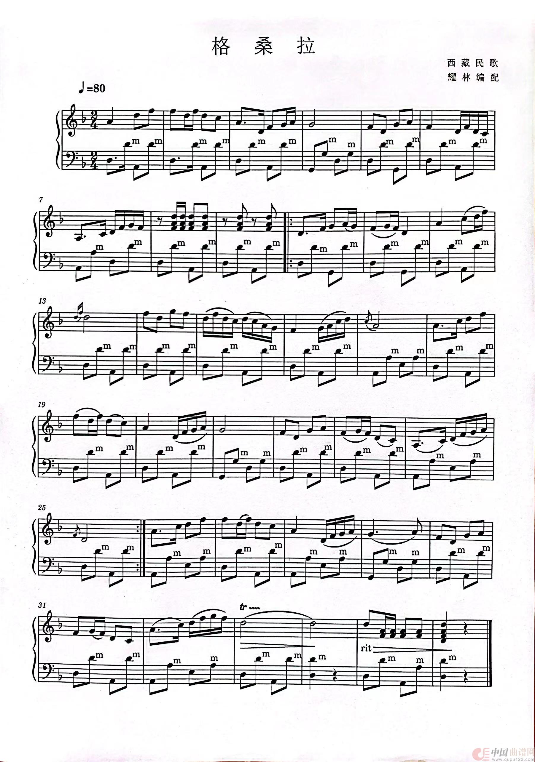 关于《格桑拉》曲谱的评论