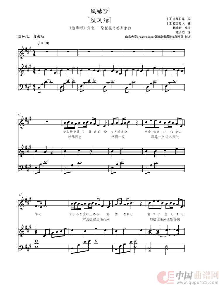 织风结[風結び ](声乐五线谱版《阴阳师》绘世花鸟卷形象曲)