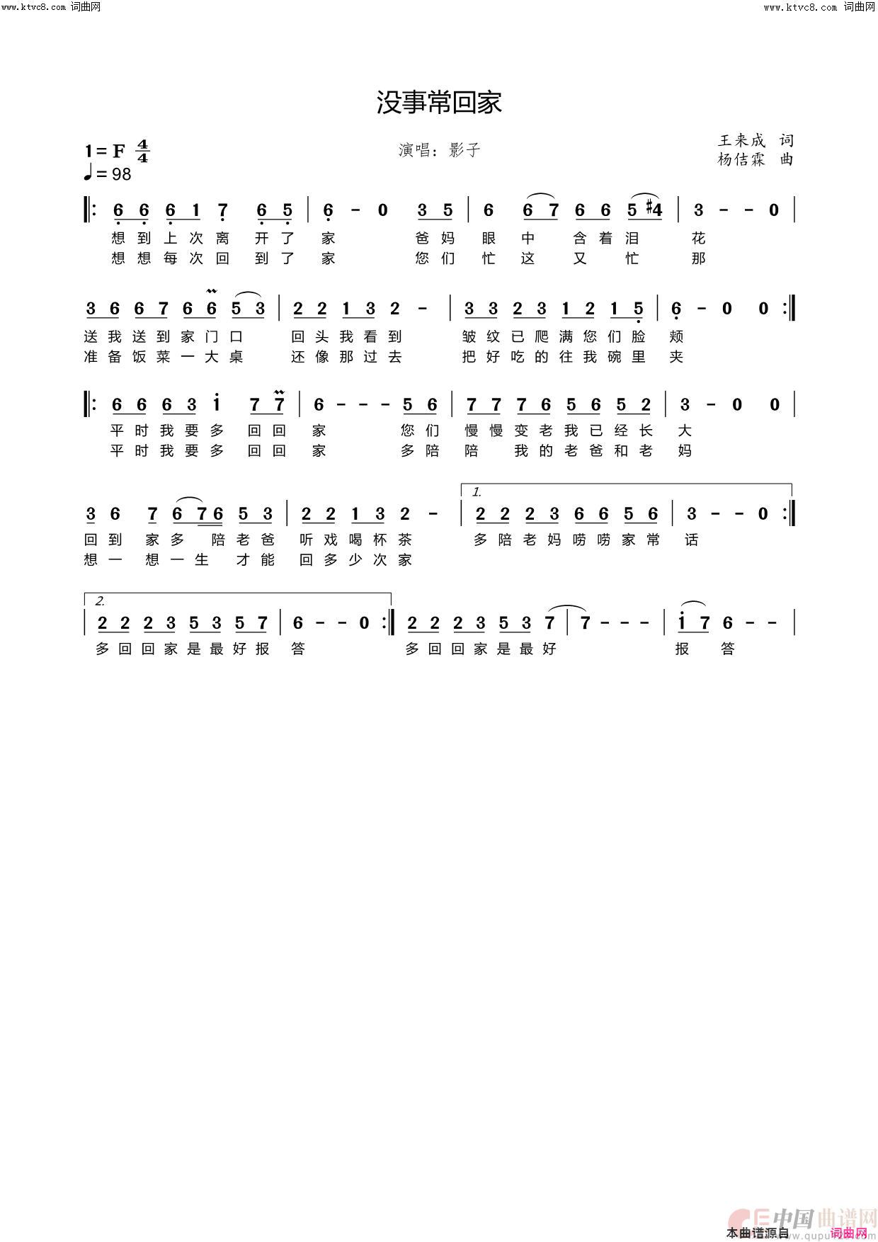 关于《没事常回家》曲谱的评论