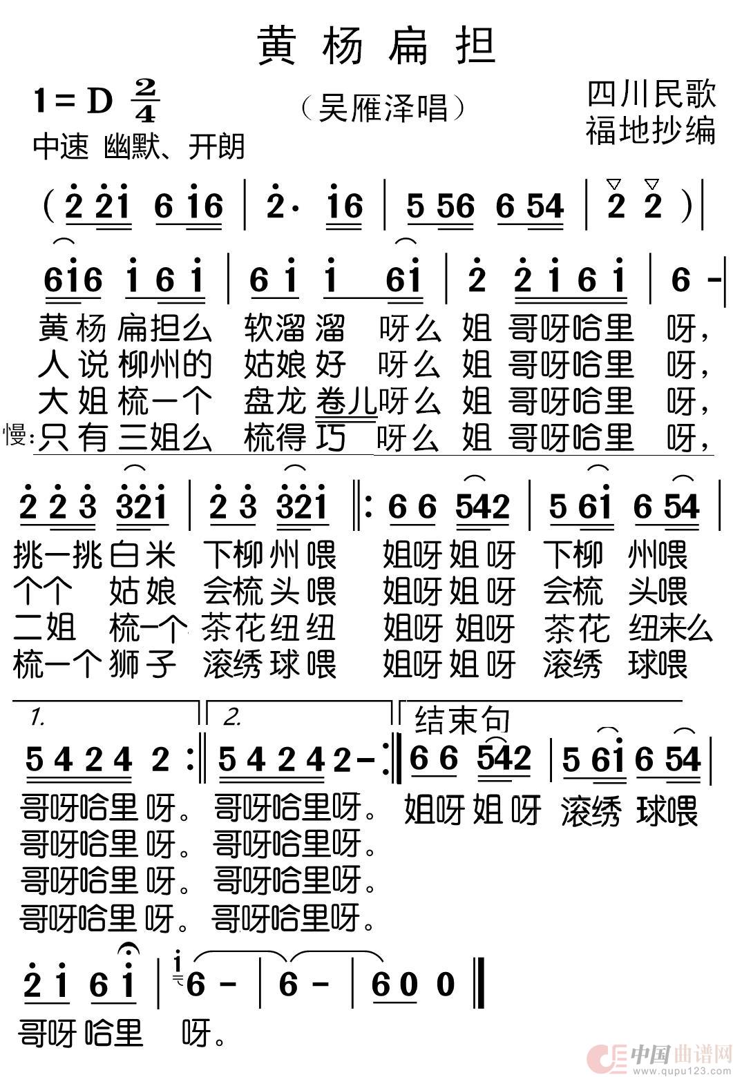 关于《黄杨扁担》曲谱的评论
