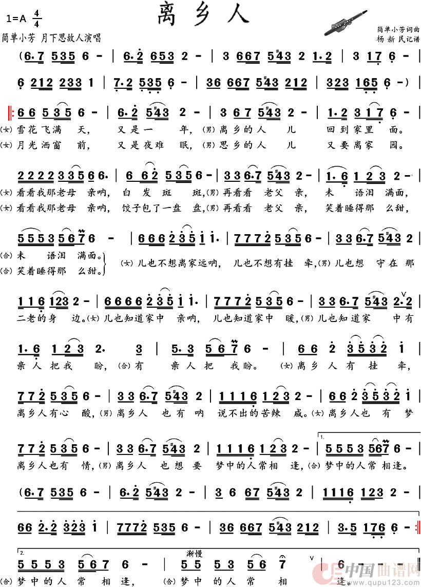 关于《离乡人》曲谱的评论