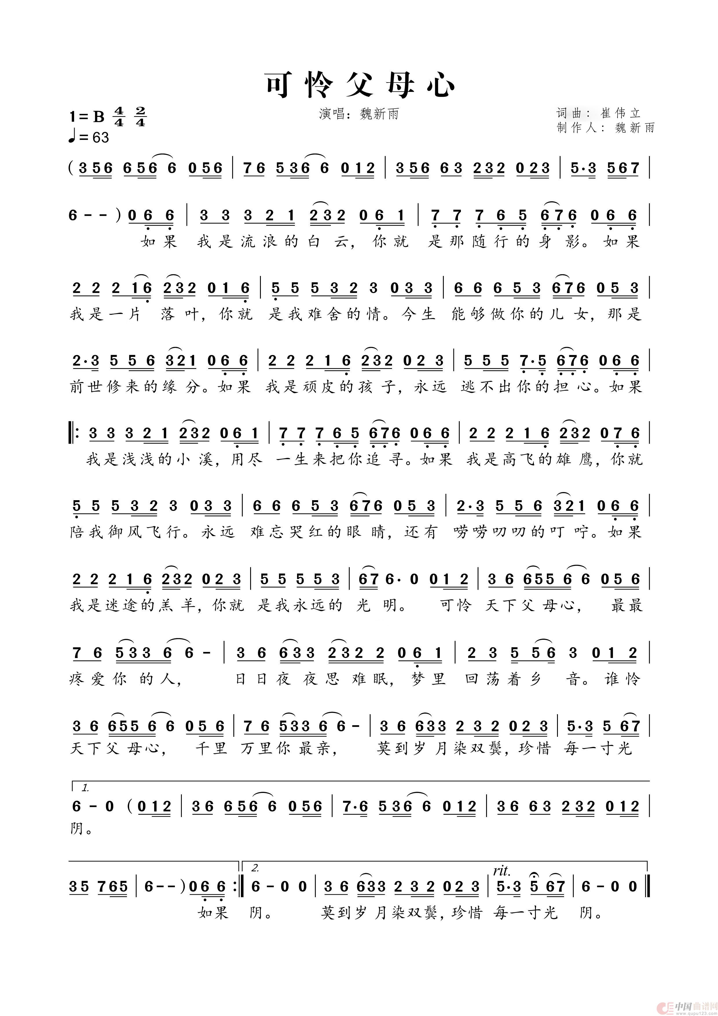 关于《魏新雨《可怜父母心》》曲谱的评论
