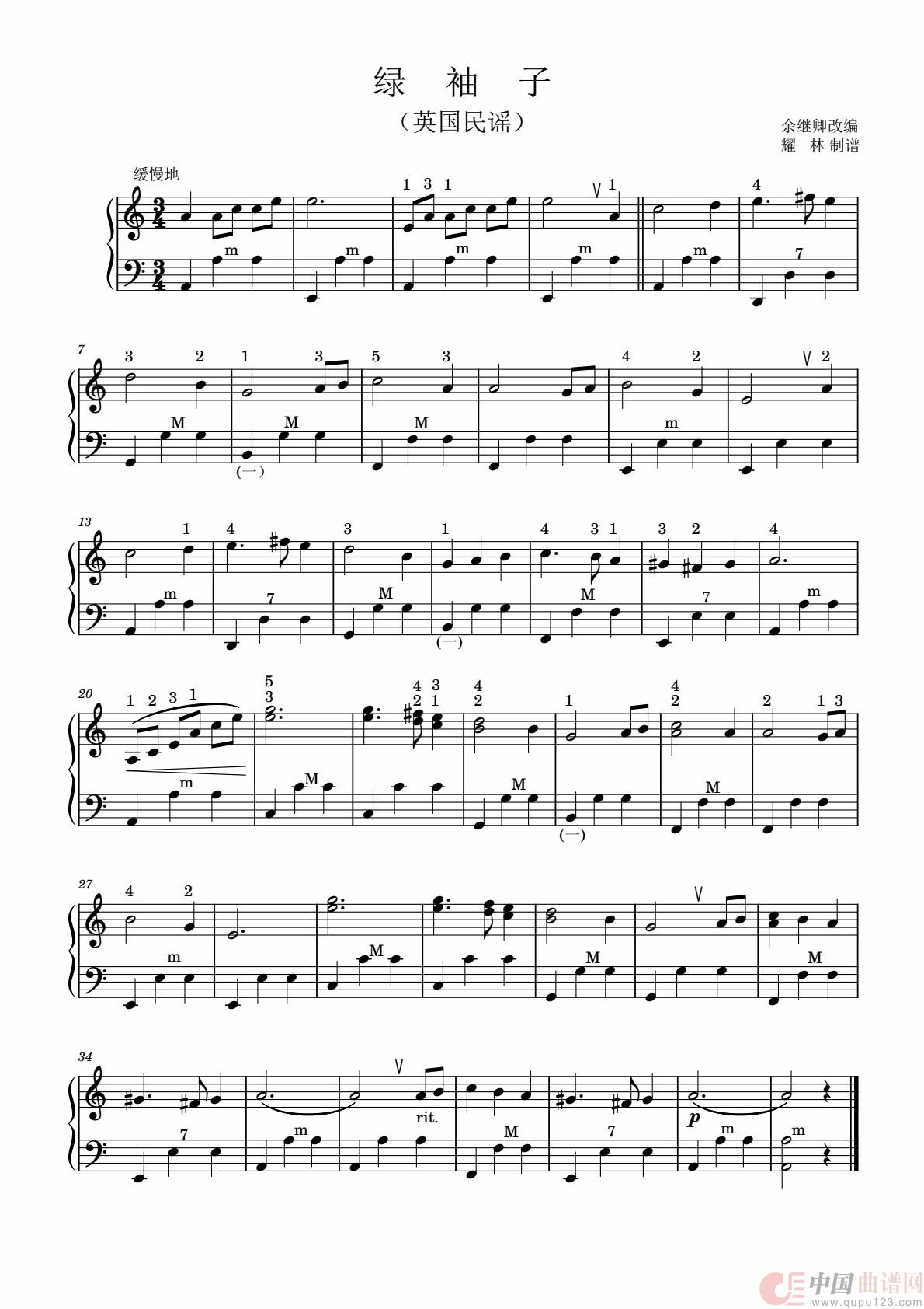 作词:英国民谣 作曲:余继卿改编 来源:耀林制谱 上传:杨先明