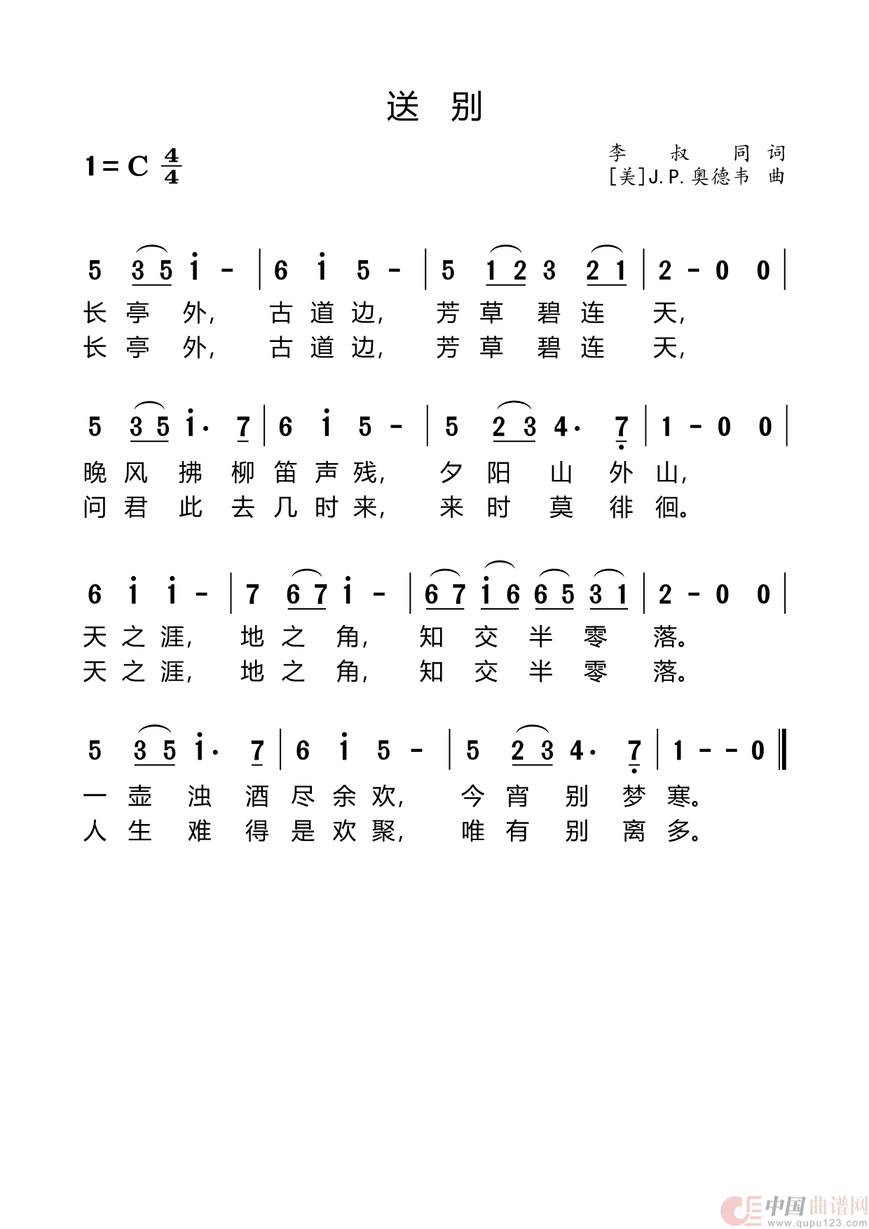 作词:李叔同   作曲:【美】J.P.奥德韦   来源:谱友小x星儿22528上传   上传:小x星儿22528   日期:2022-06-10   浏览次数: