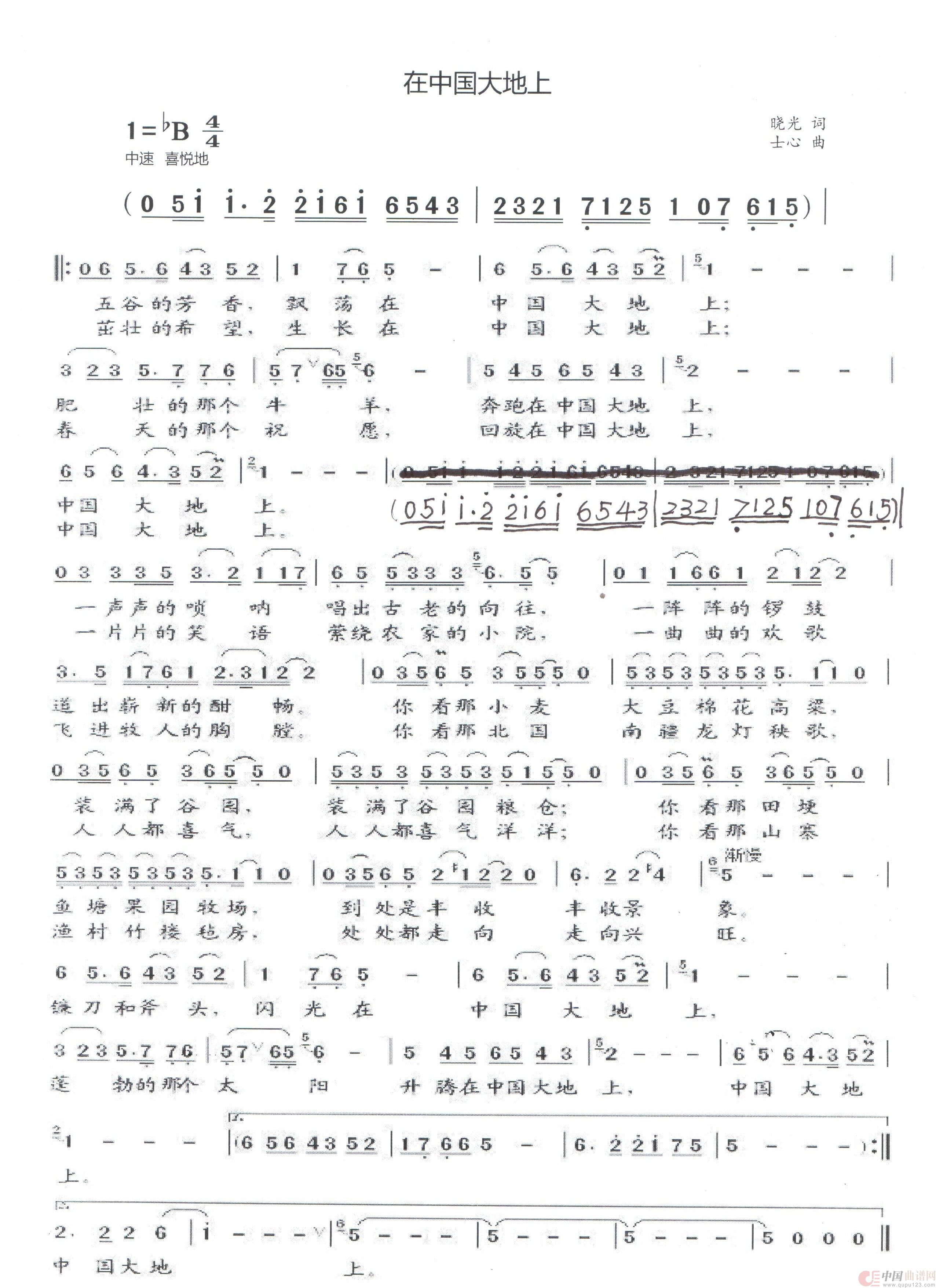 关于《在中国大地上》曲谱的评论