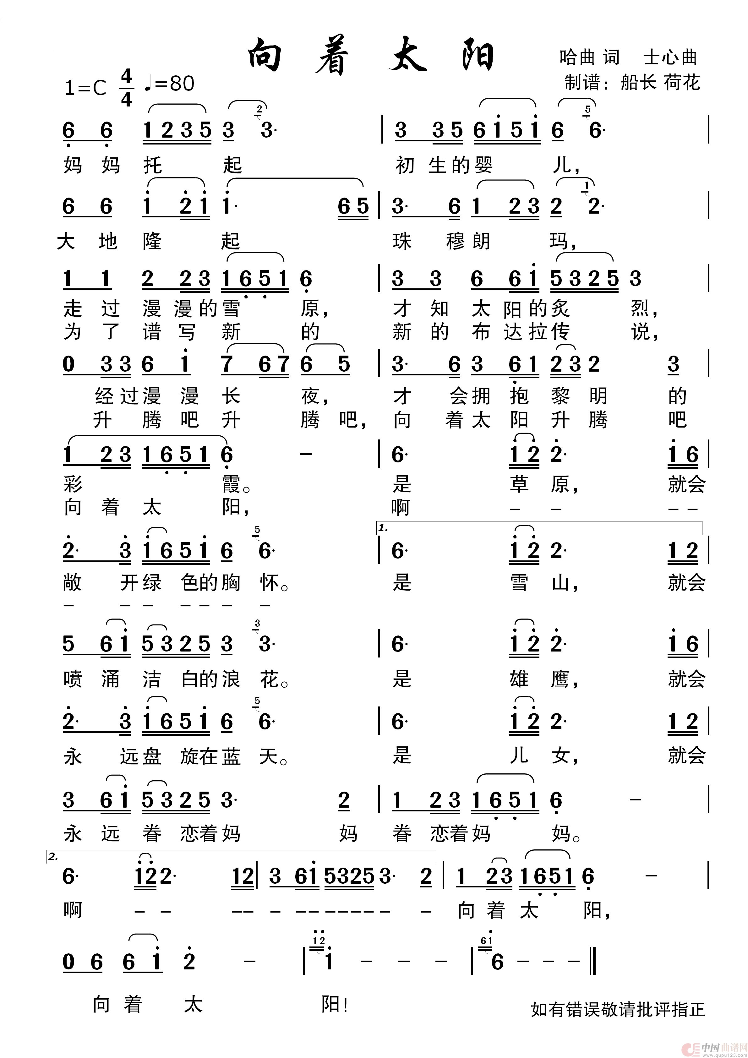 关于《向着太阳》曲谱的评论