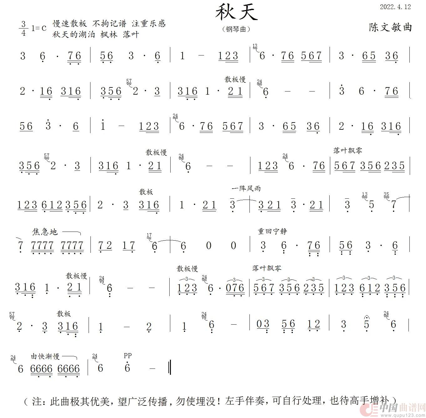 关于《秋天》曲谱的评论