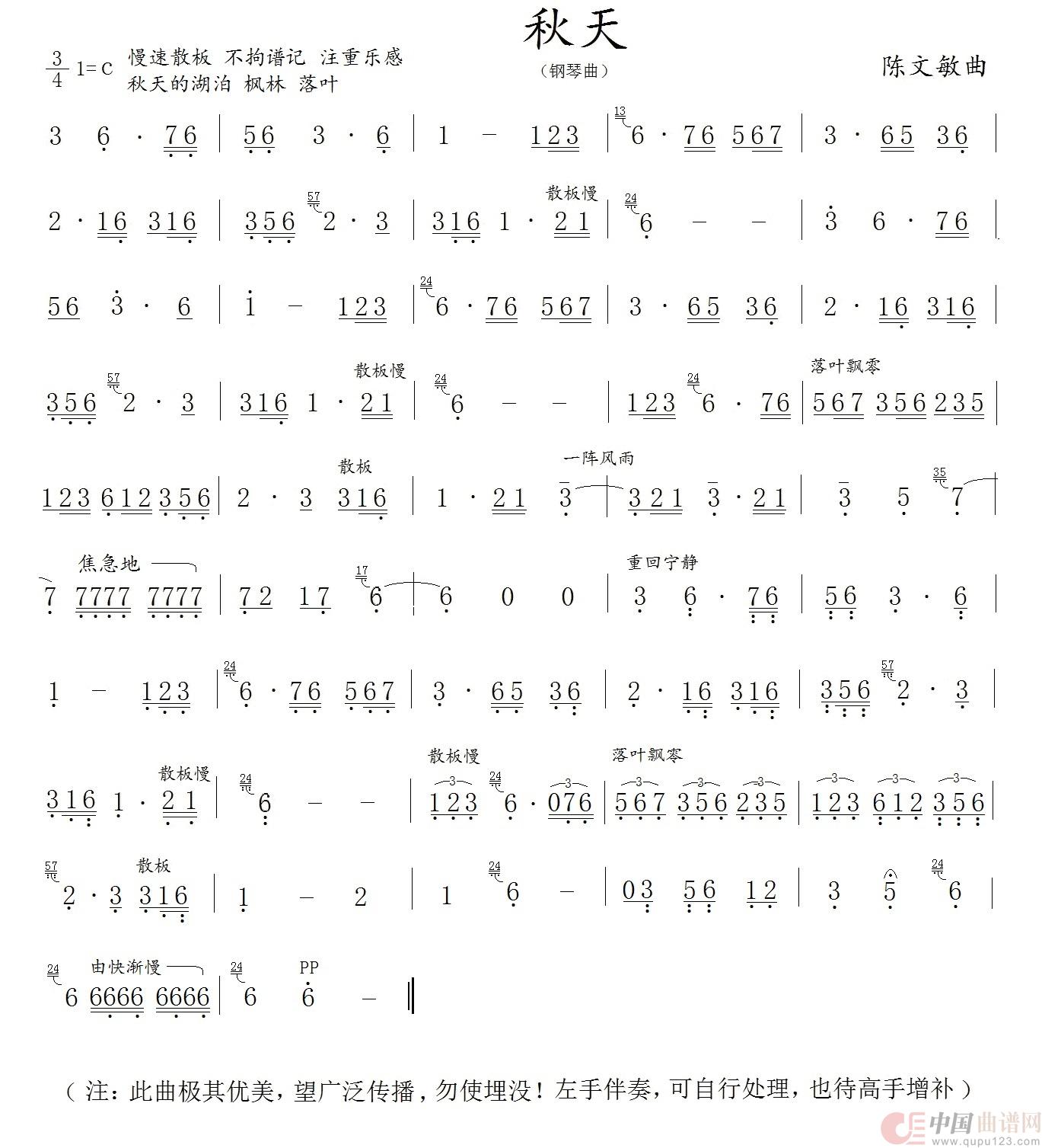 关于《秋天》曲谱的评论