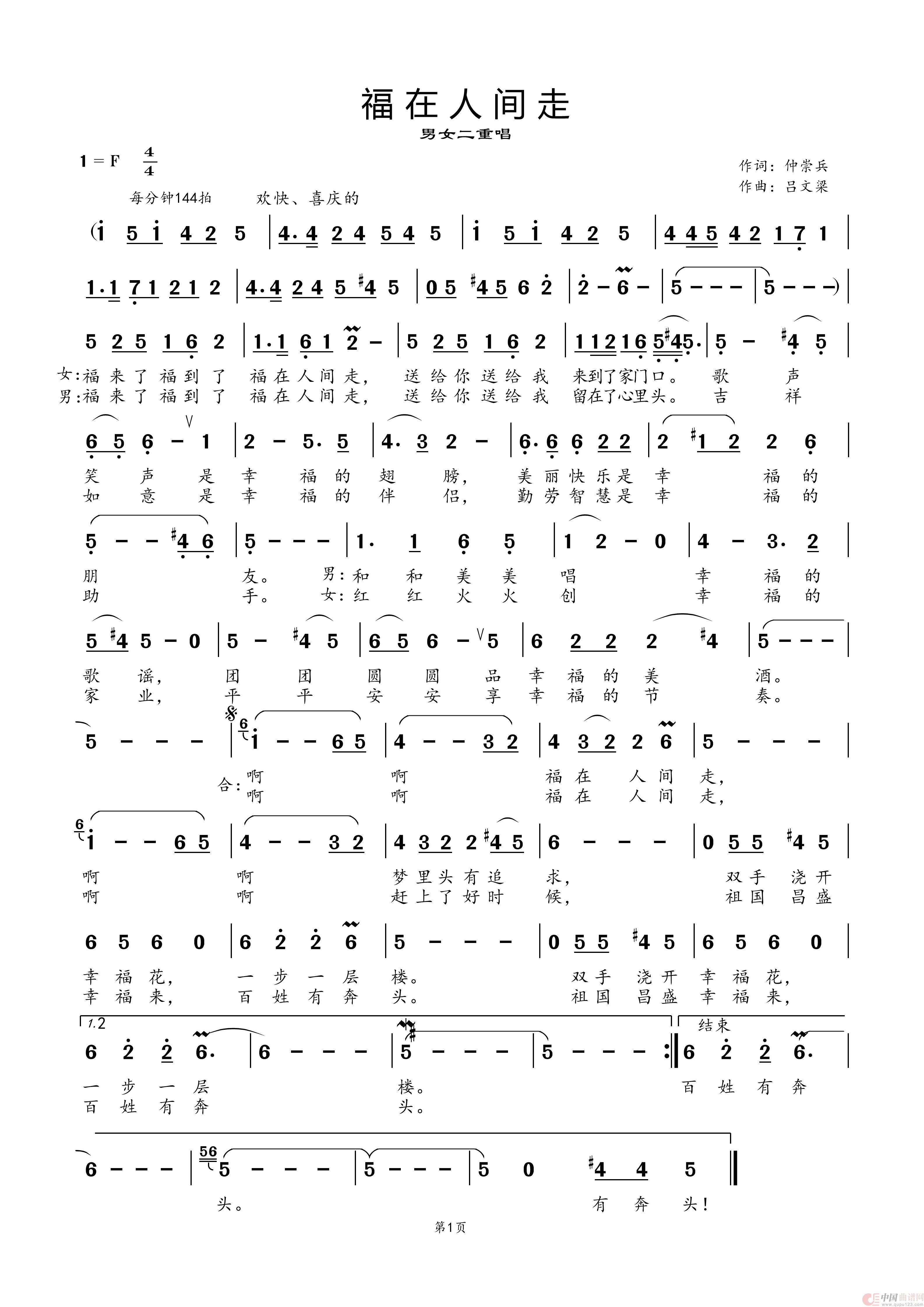 提示:在曲谱图片上单击右键,选择“图片另存为...”即可将曲谱保存到您的电脑中,打印时候可将图片插入到WORD中,调整合适大小打印即可。