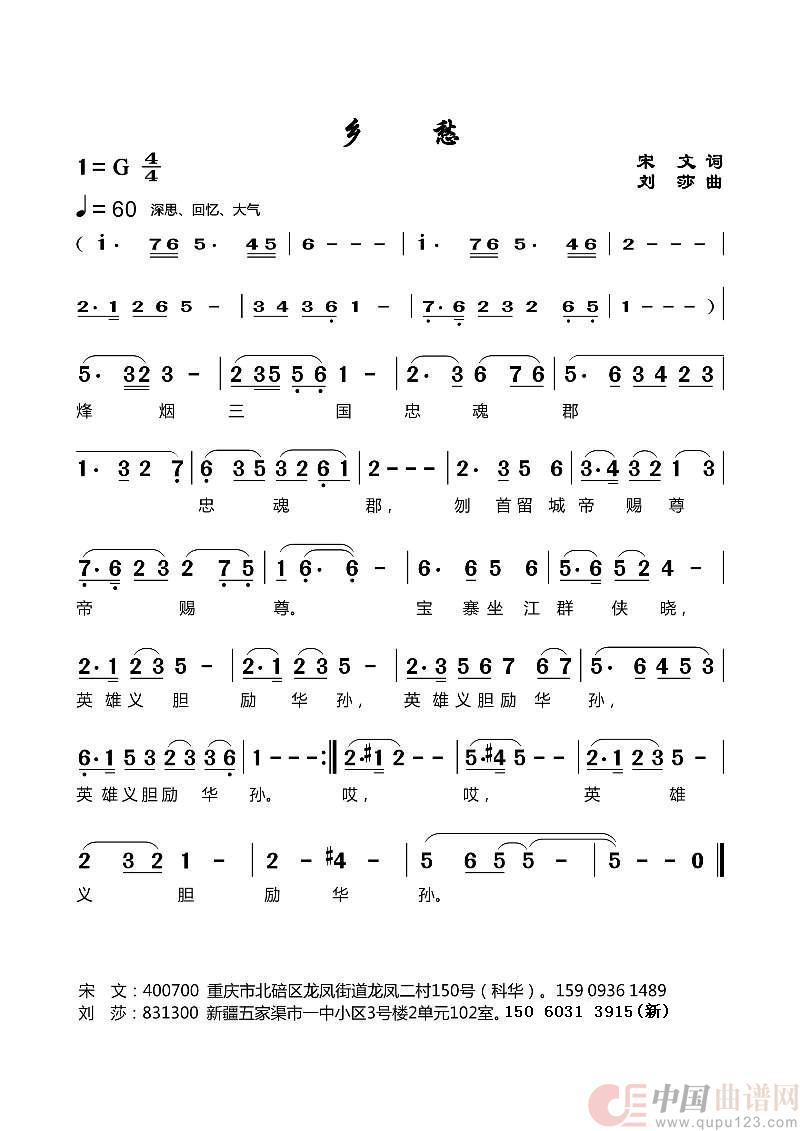 关于《乡愁》曲谱的评论