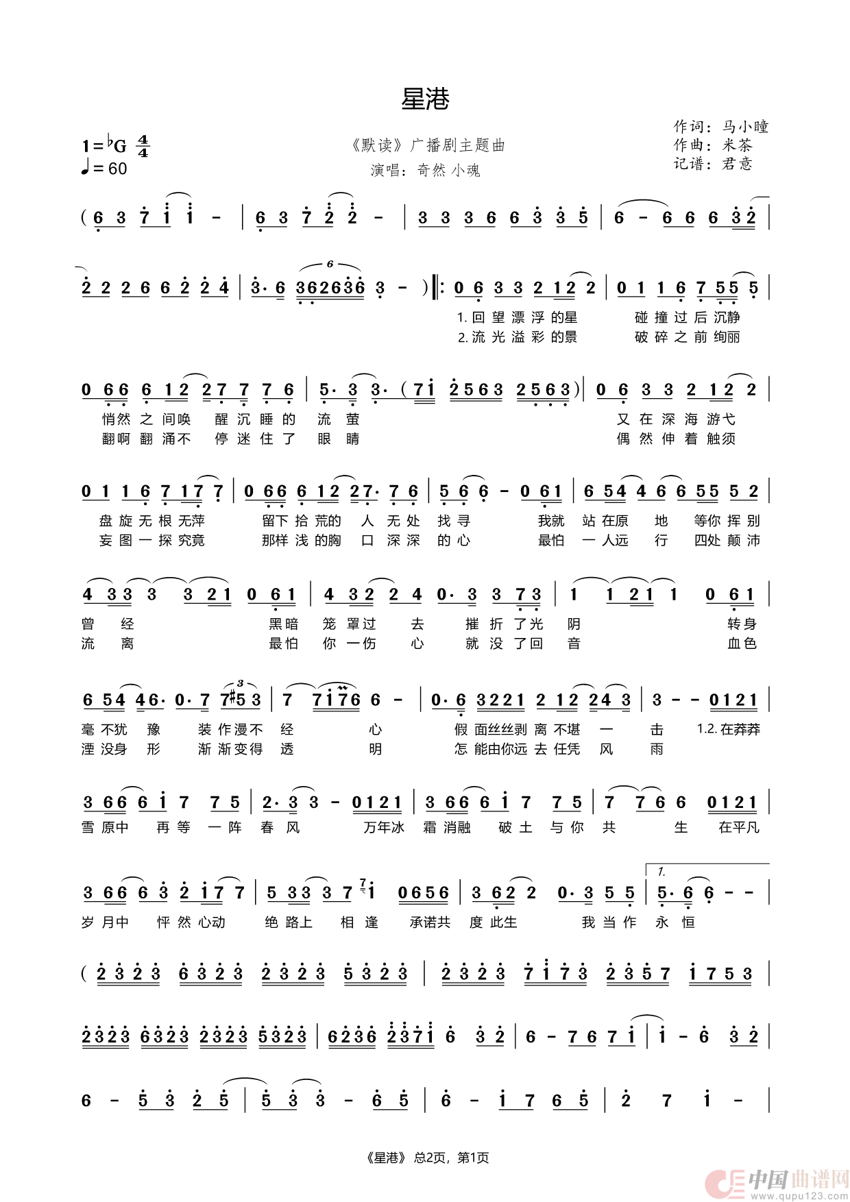 关于《星港》曲谱的评论