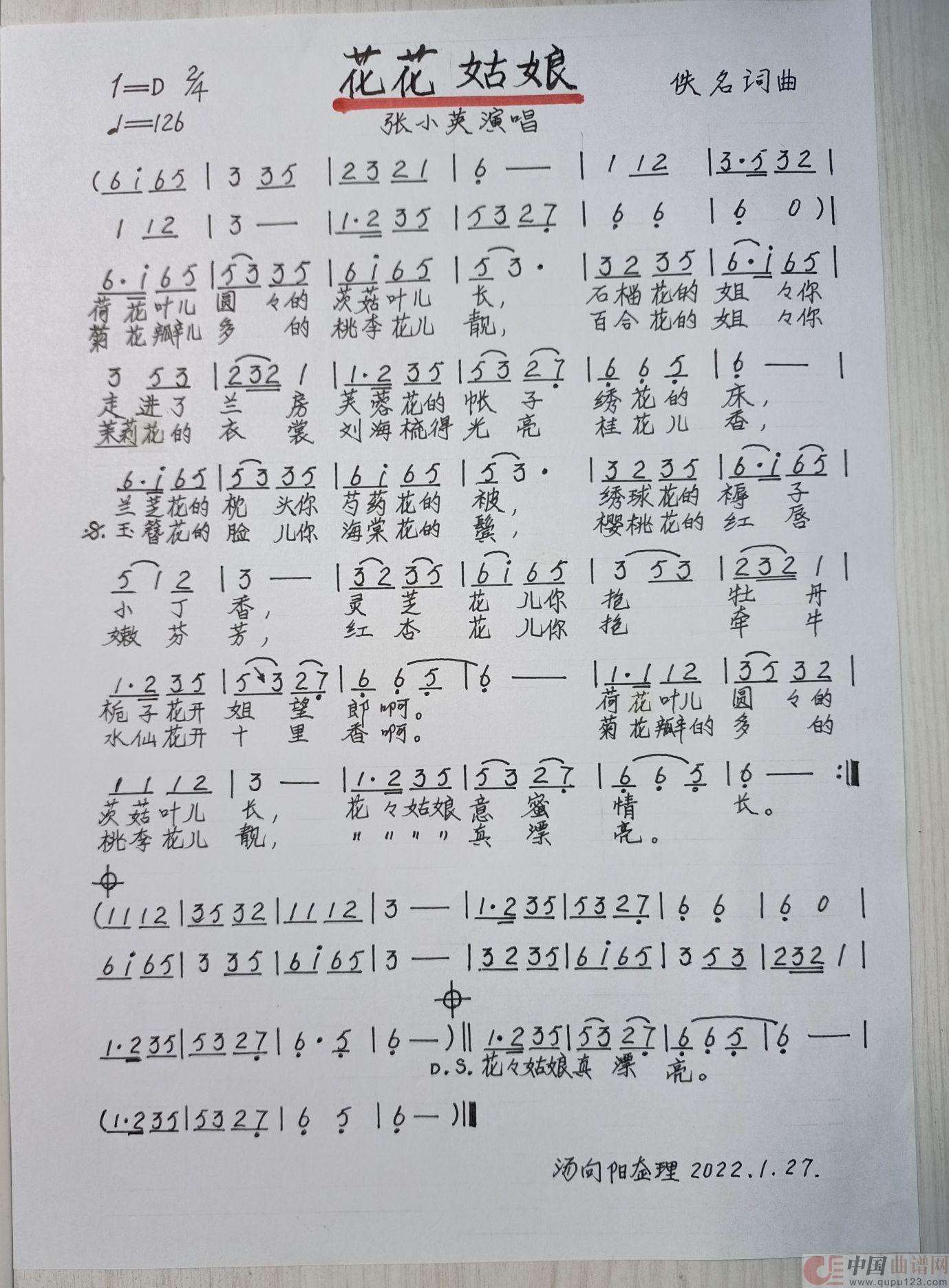 关于《花花姑娘》曲谱的评论