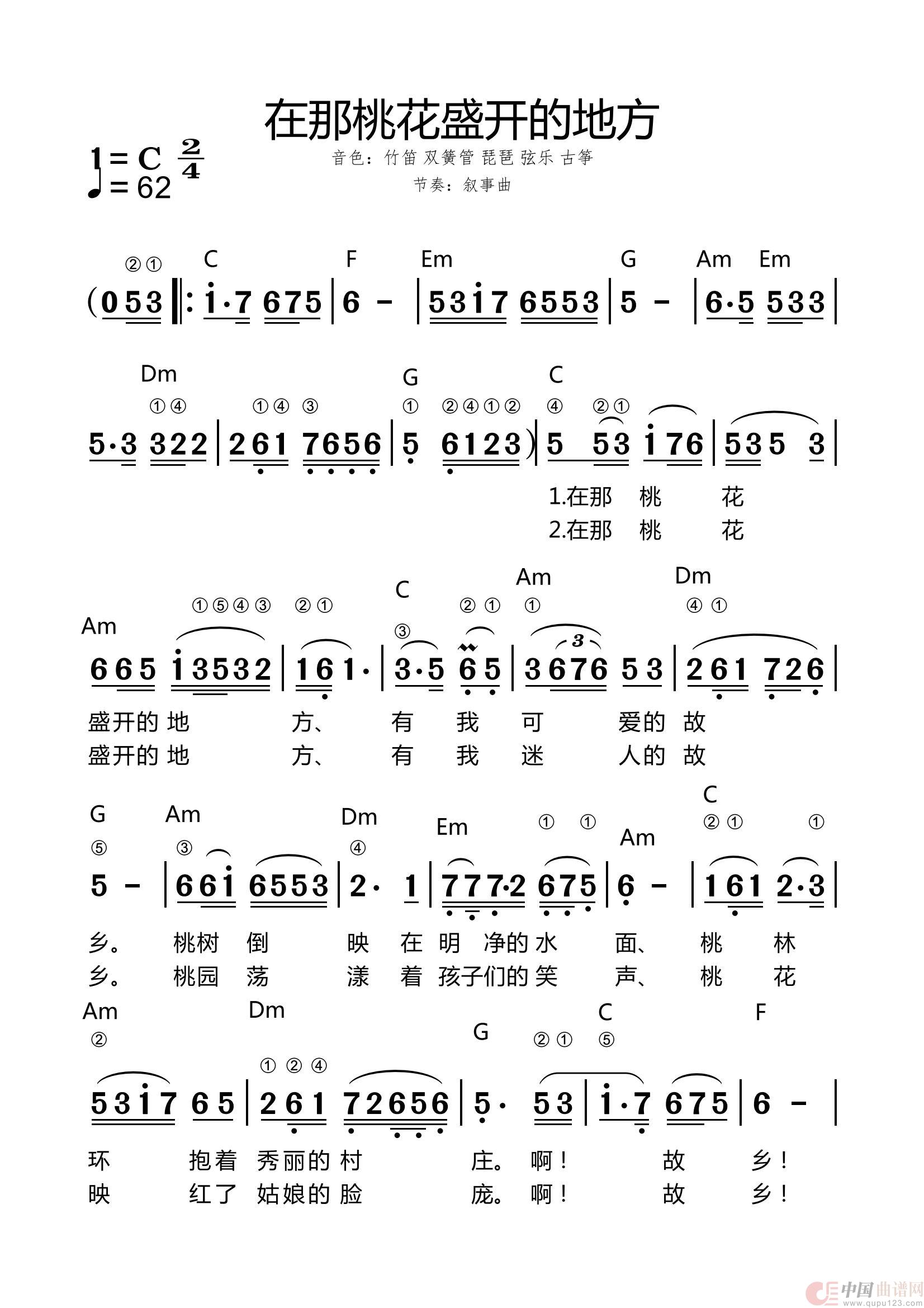 关于《在那桃花盛开的地方》曲谱的评论