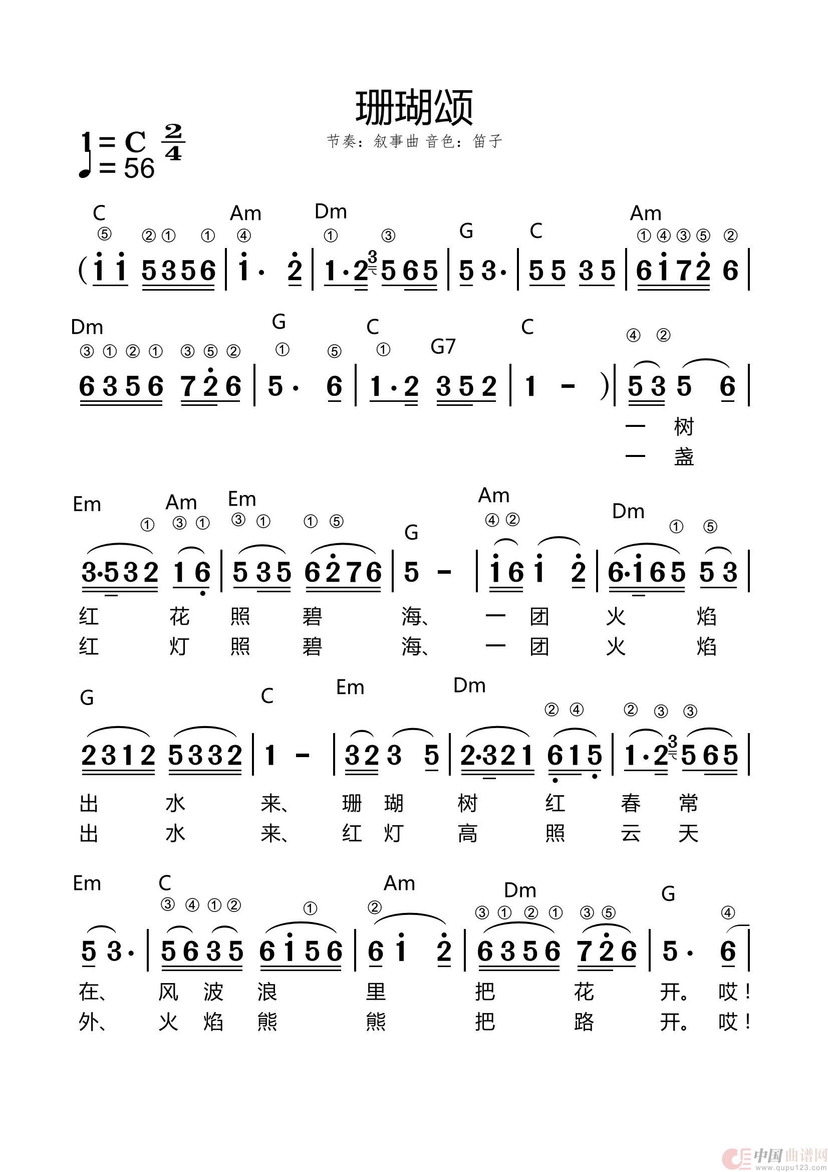 关于《珊瑚颂》曲谱的评论