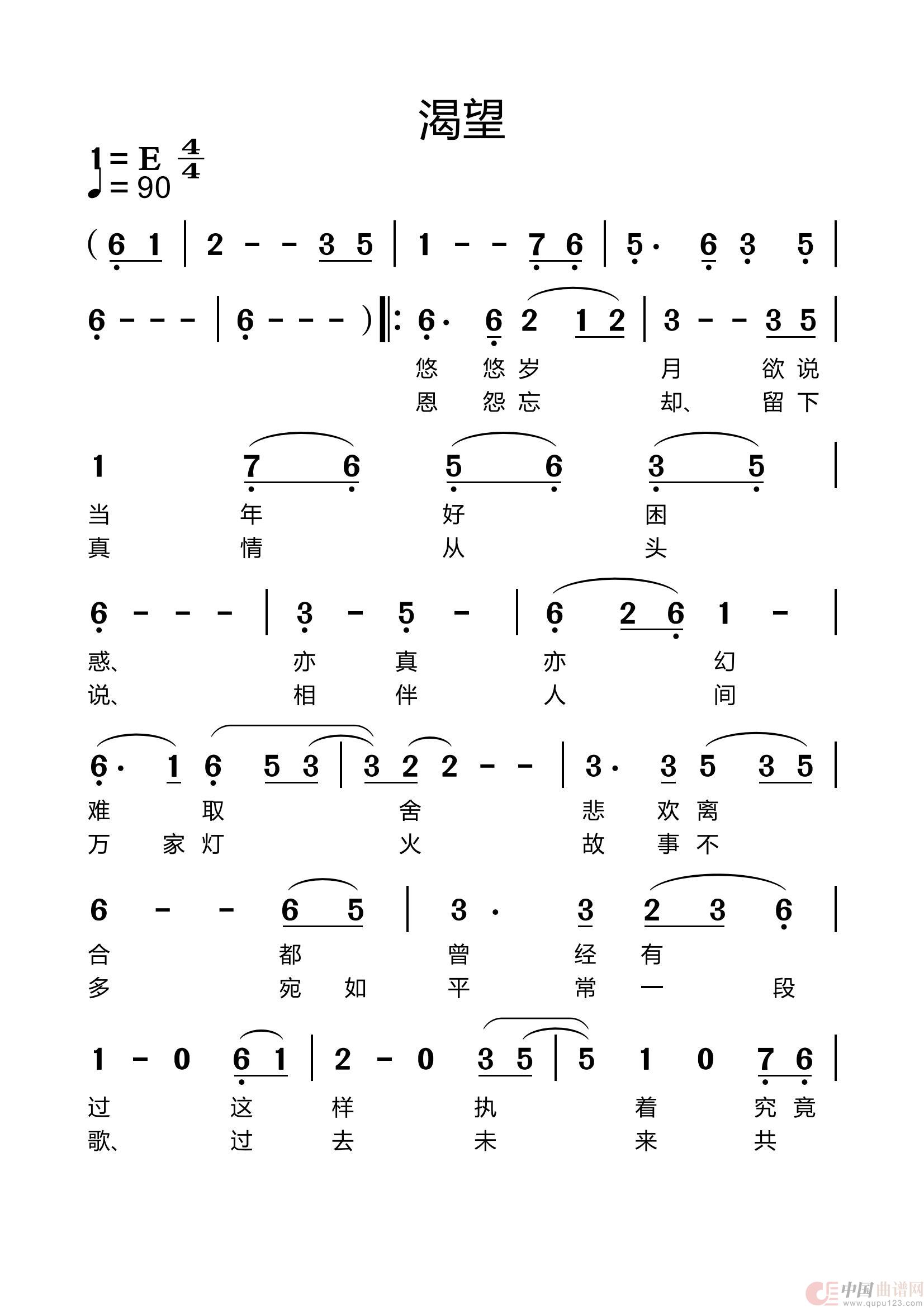 关于《渴望》曲谱的评论