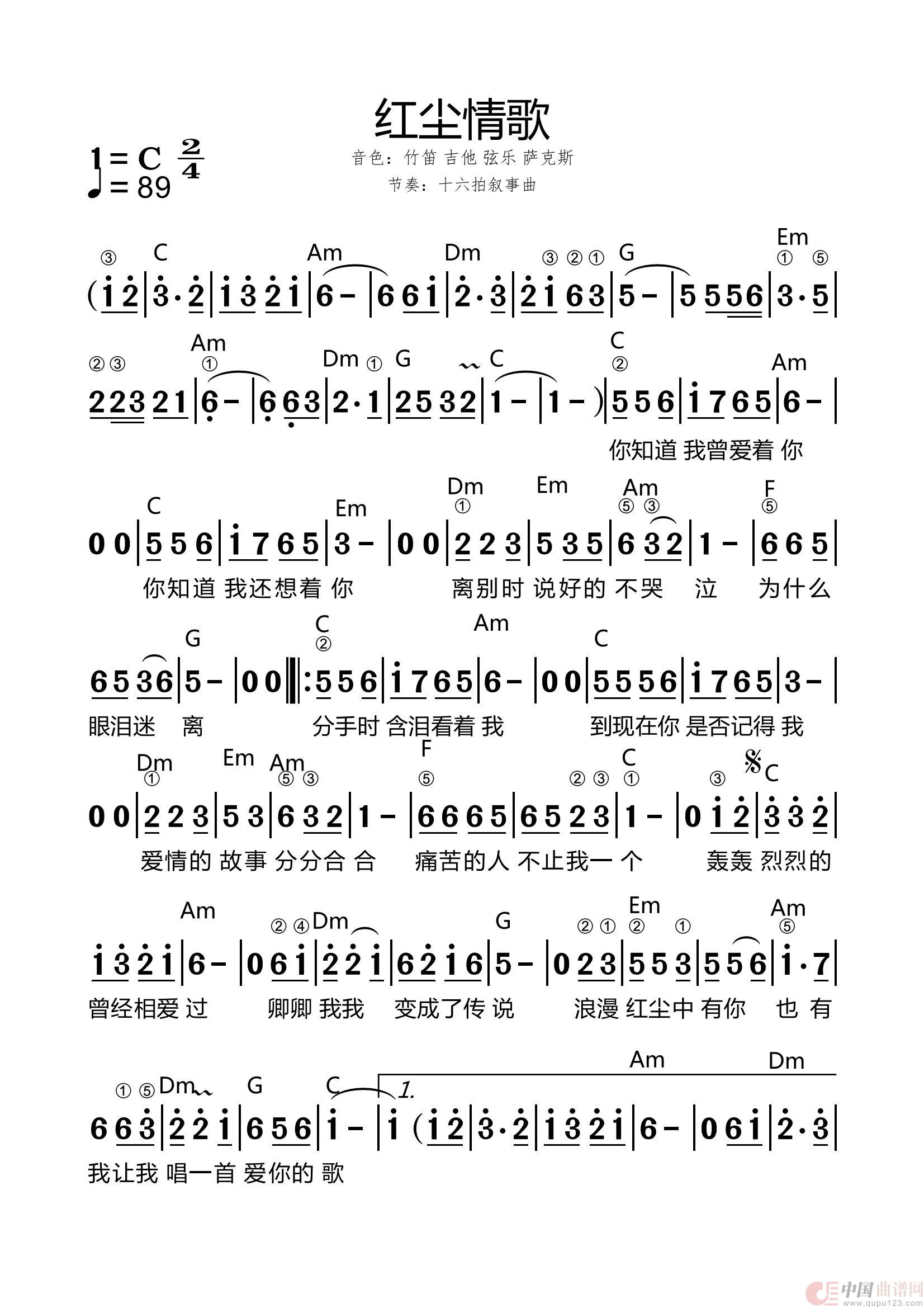 关于《红尘情歌》曲谱的评论