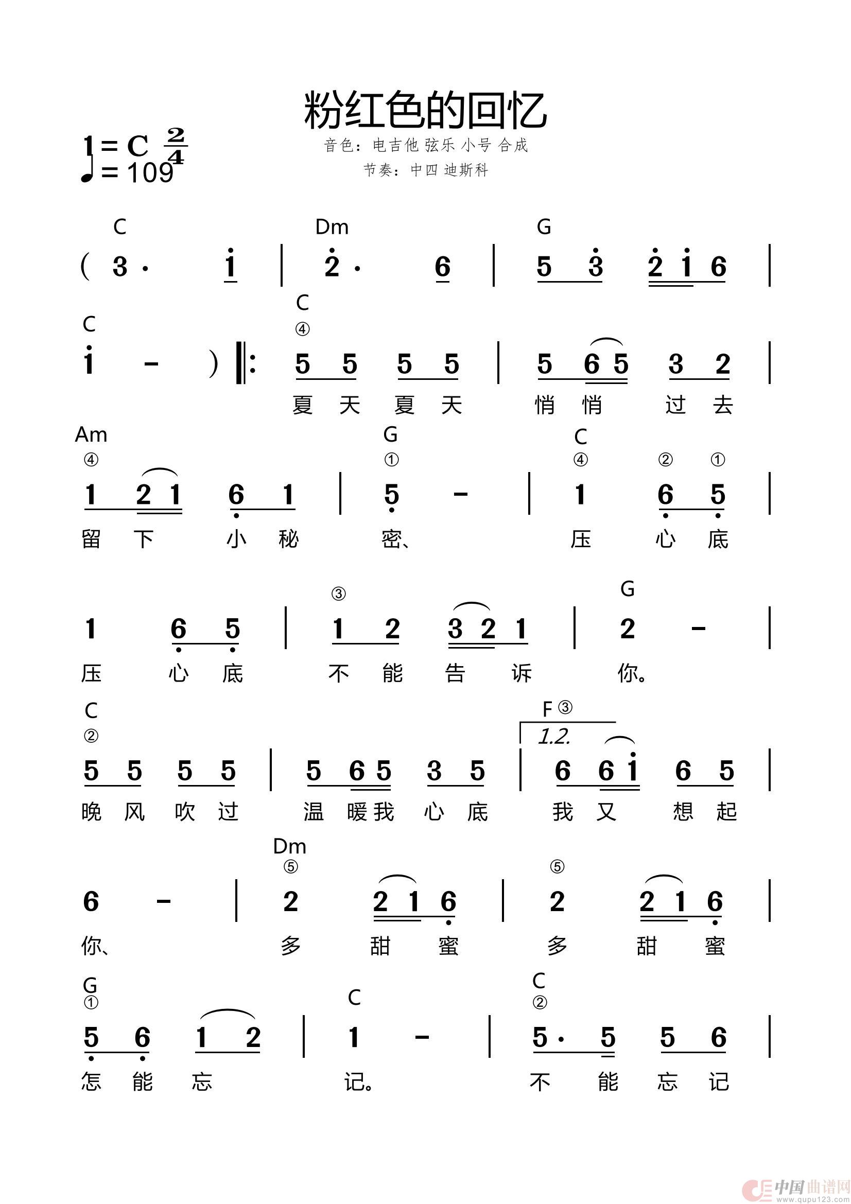 关于《粉红色的回忆》曲谱的评论