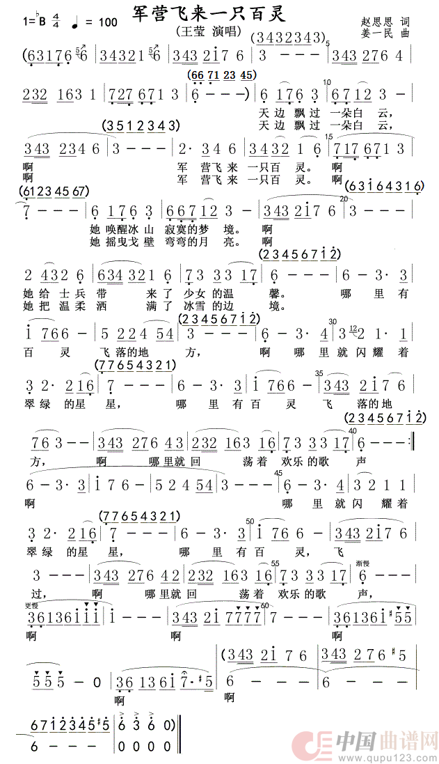 关于《军营飞来一只百灵》曲谱的评论