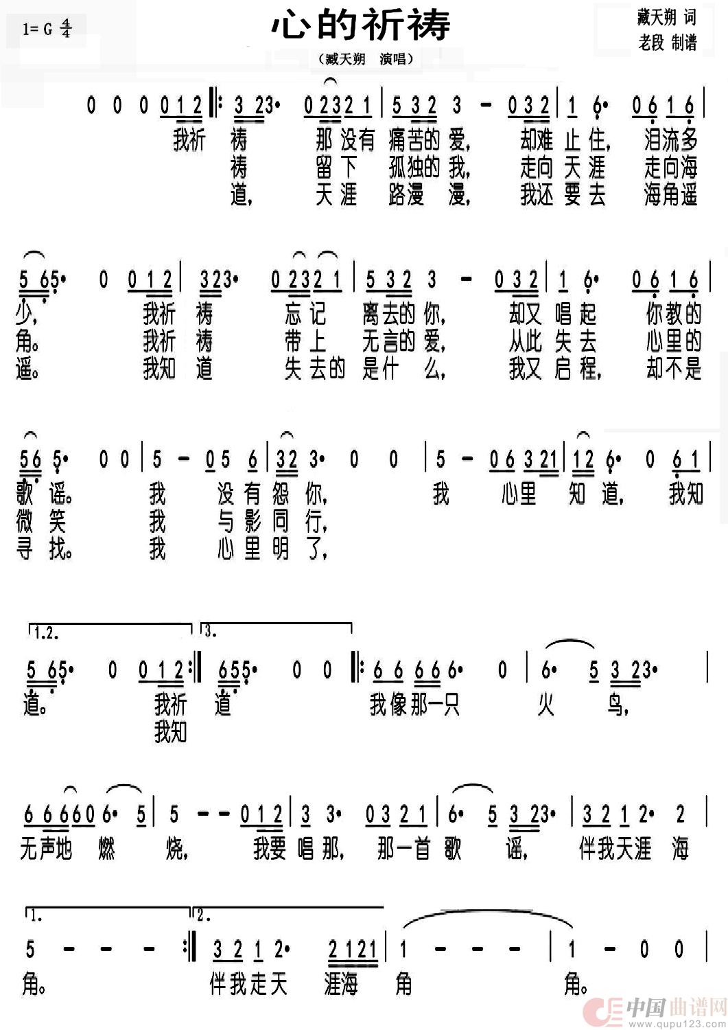 作词:藏天朔 作曲:藏天朔 演唱(奏):藏天朔 来源:网络 上传:老段制谱