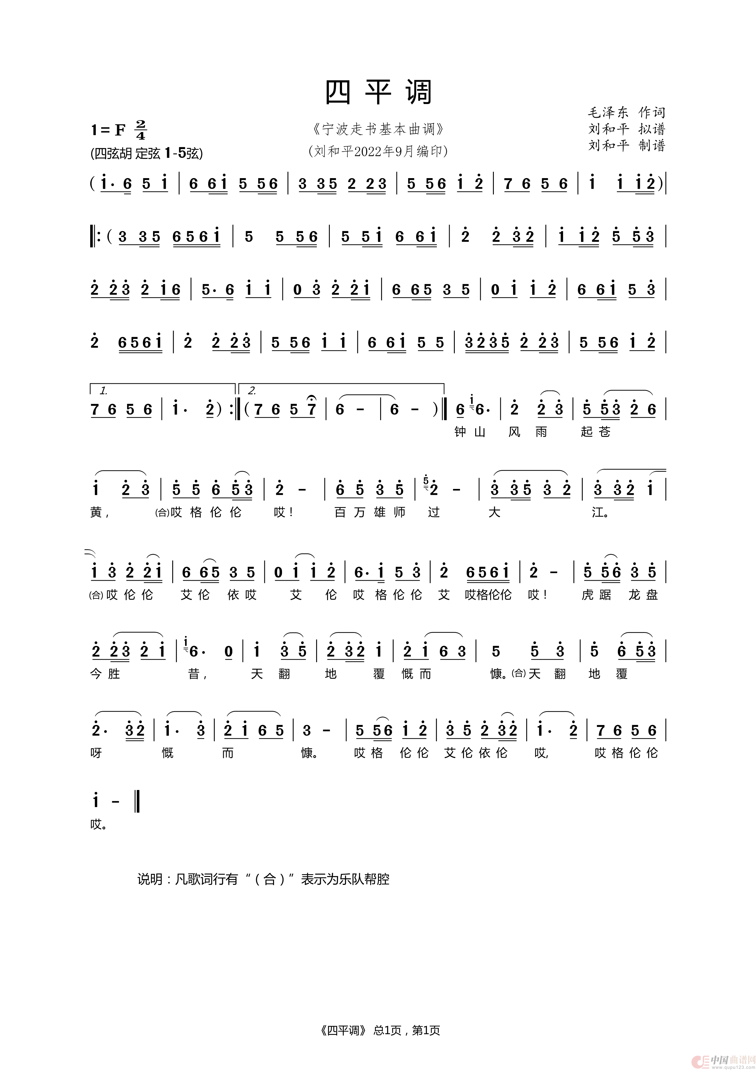 四平调(宁波走书曲谱)(六横走书曲谱)