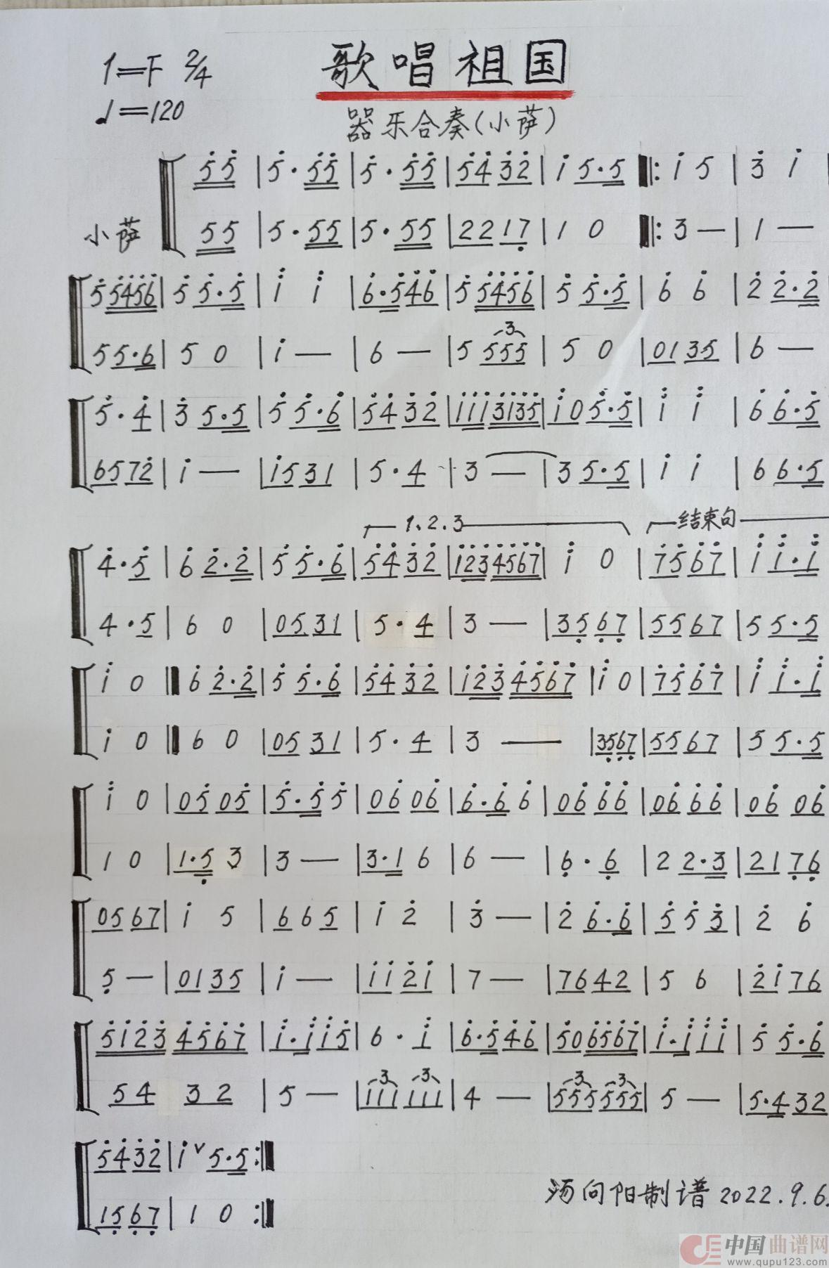 关于《歌唱祖国》曲谱的评论