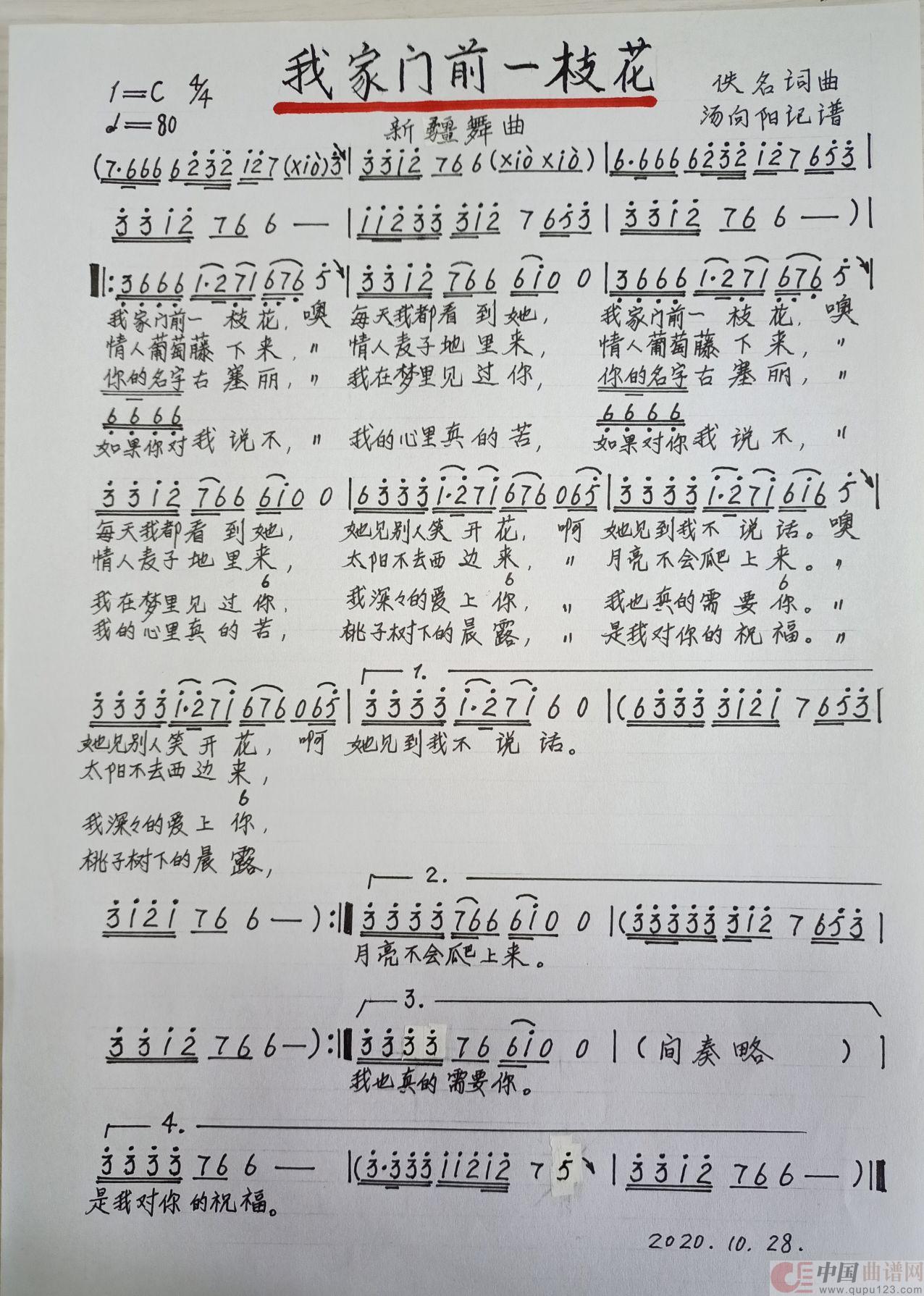 关于《我家门前一枝花》曲谱的评论