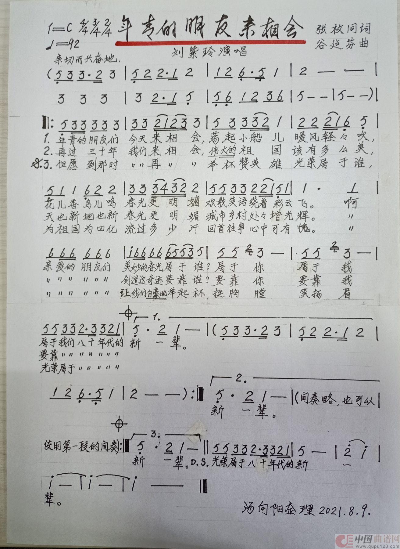关于《年青的朋友来相会》曲谱的评论