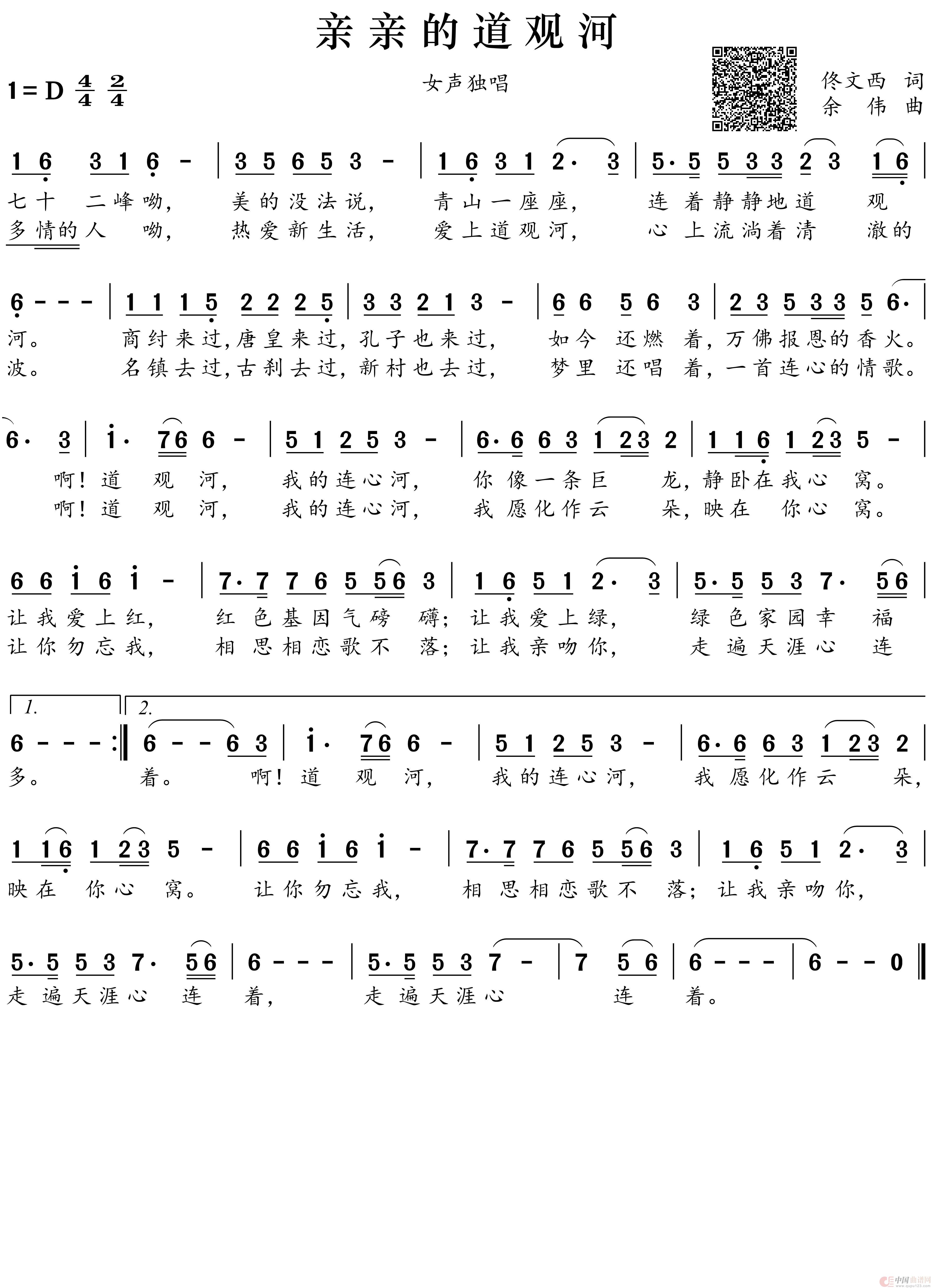 关于《亲亲的道观河》曲谱的评论