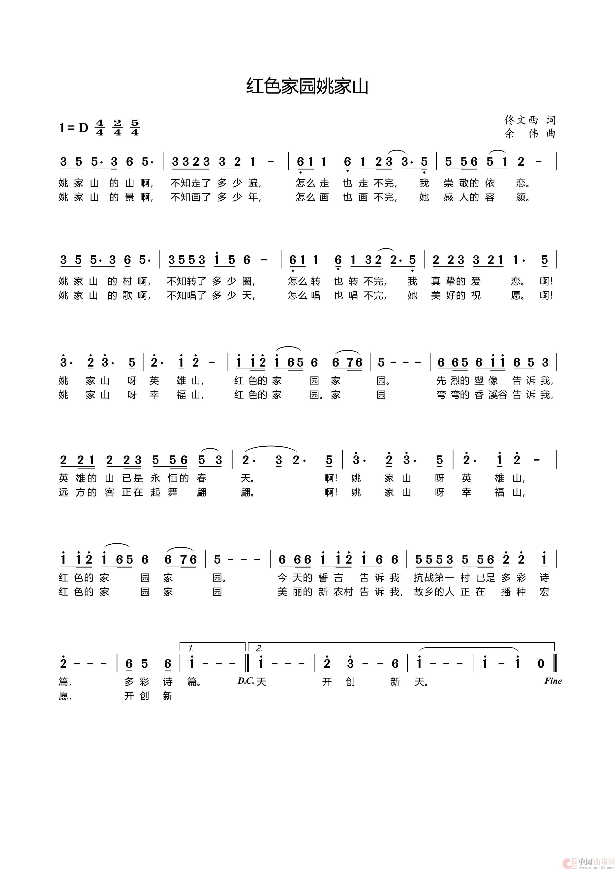 关于《红色家园姚家山》曲谱的评论