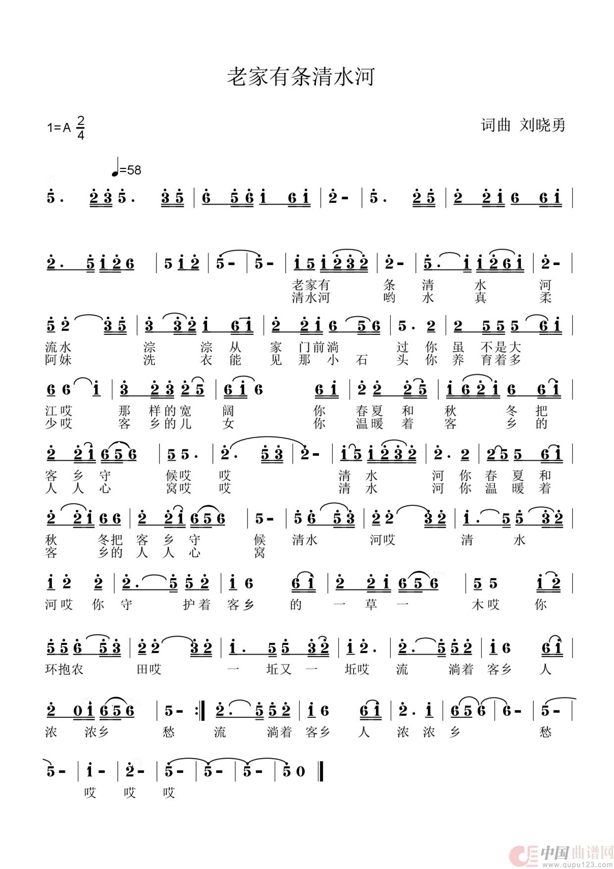 关于《老家有条清水河》曲谱的评论