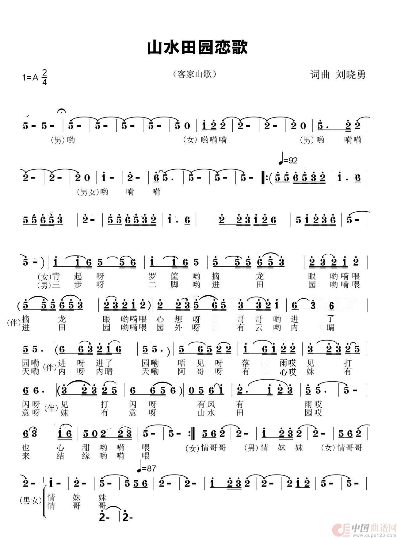 关于《山水田园恋歌》曲谱的评论