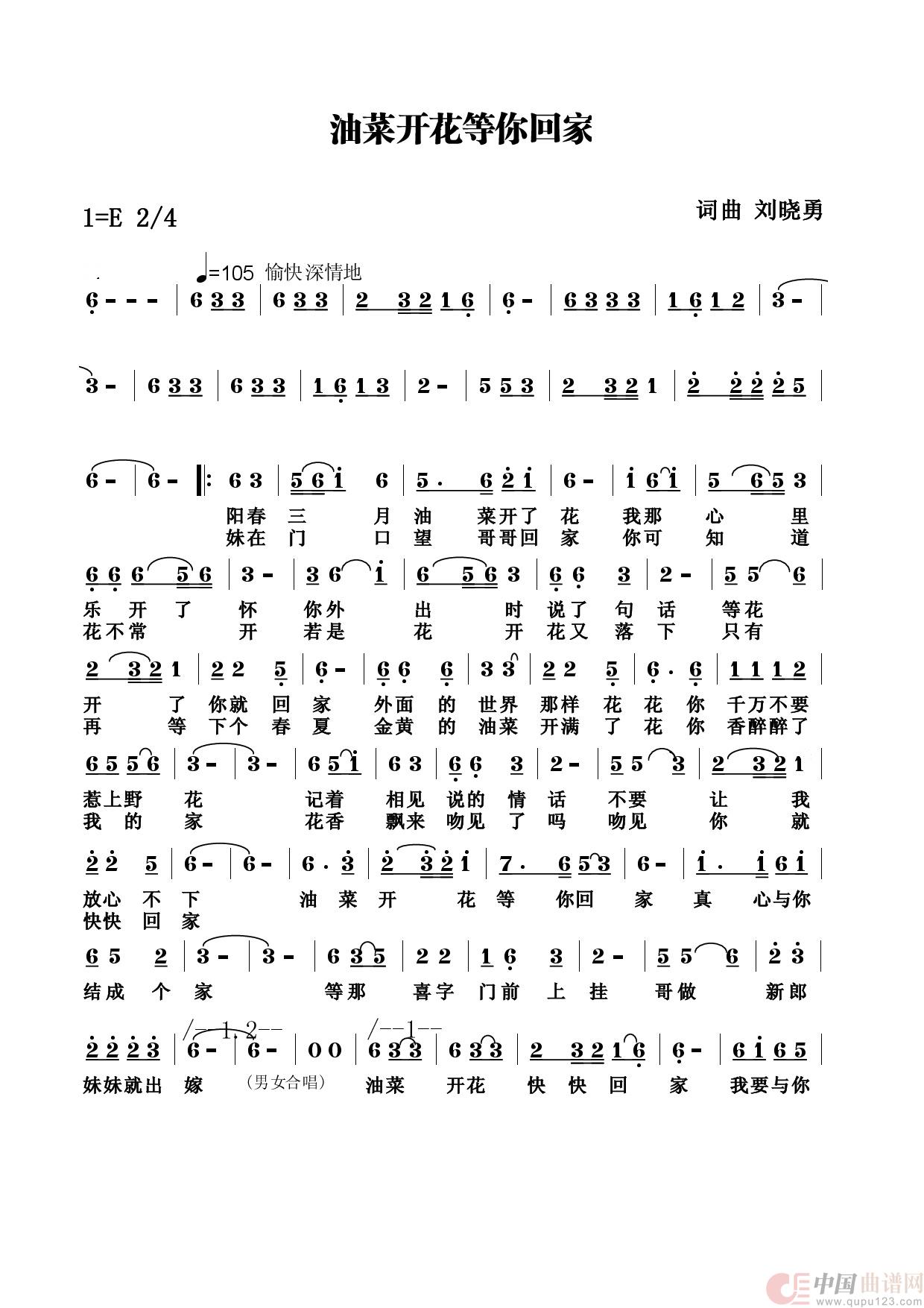 关于《油菜花开等你回家》曲谱的评论