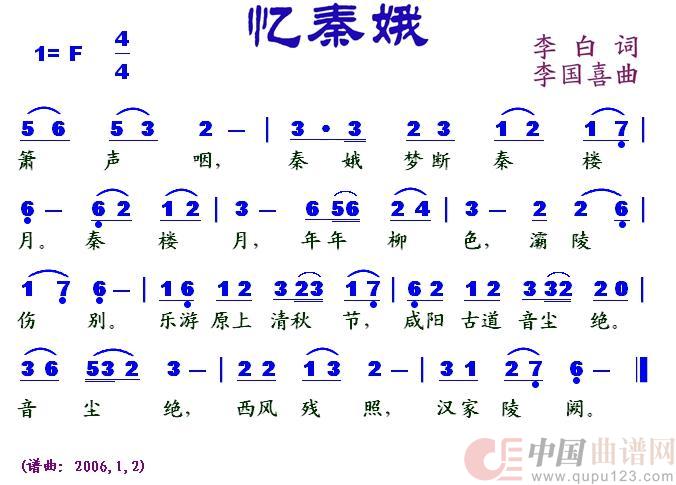 关于《忆秦娥》曲谱的评论