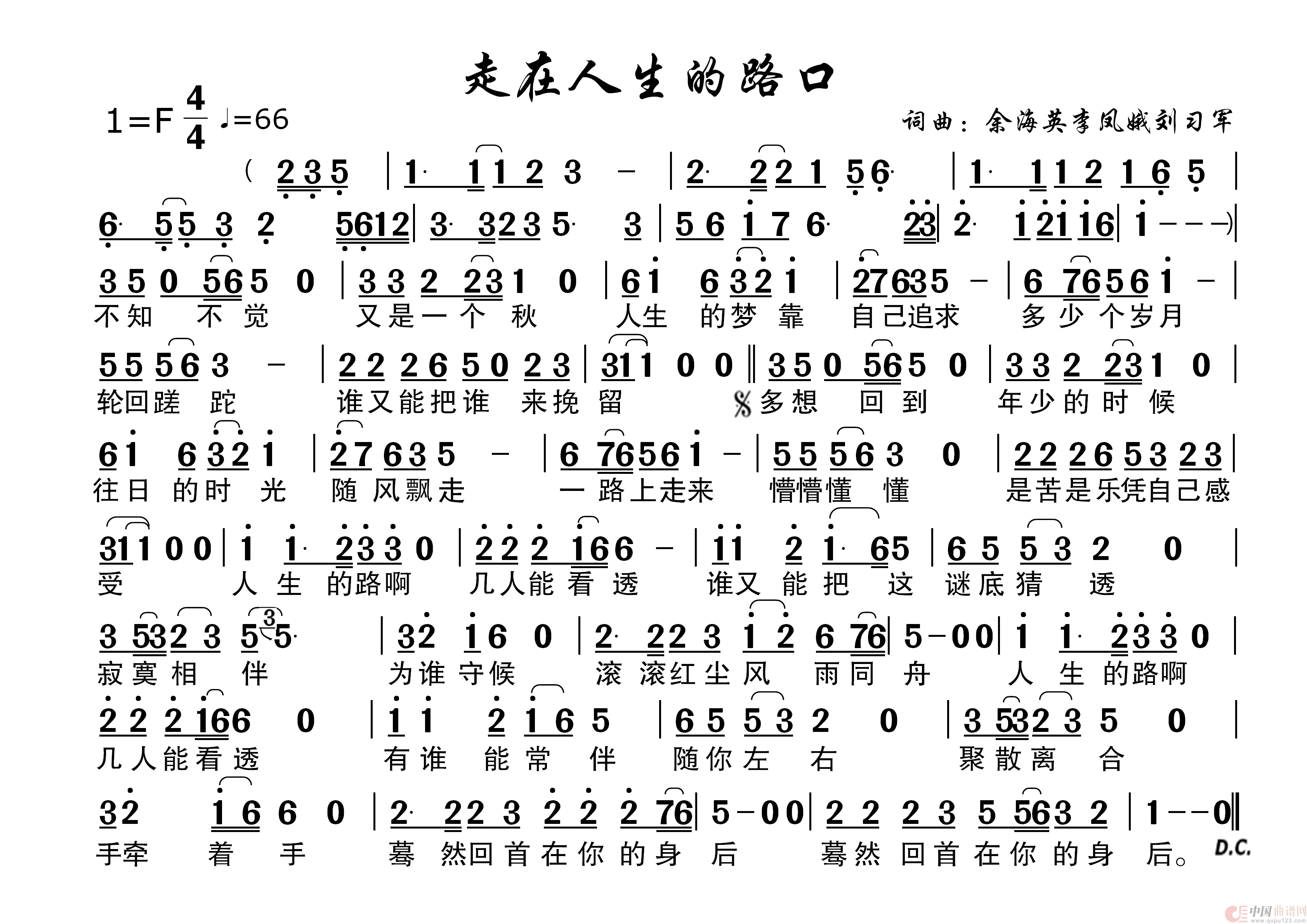 关于《走在人生的路口》曲谱的评论