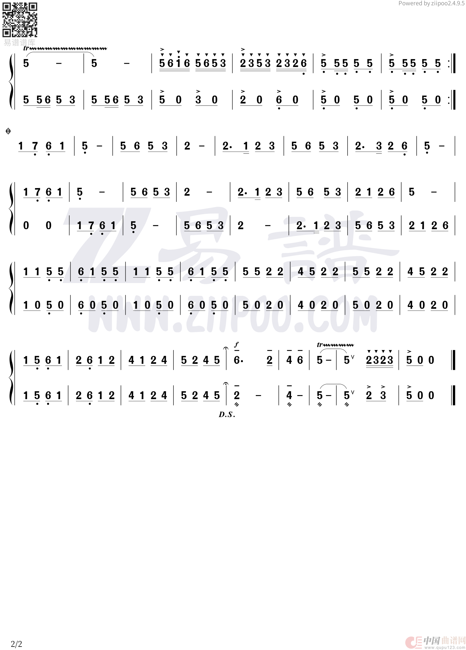 提示:在曲谱图片上单击右键,选择“图片另存为...”即可将曲谱保存到您的电脑中,打印时候可将图片插入到WORD中,调整合适大小打印即可。