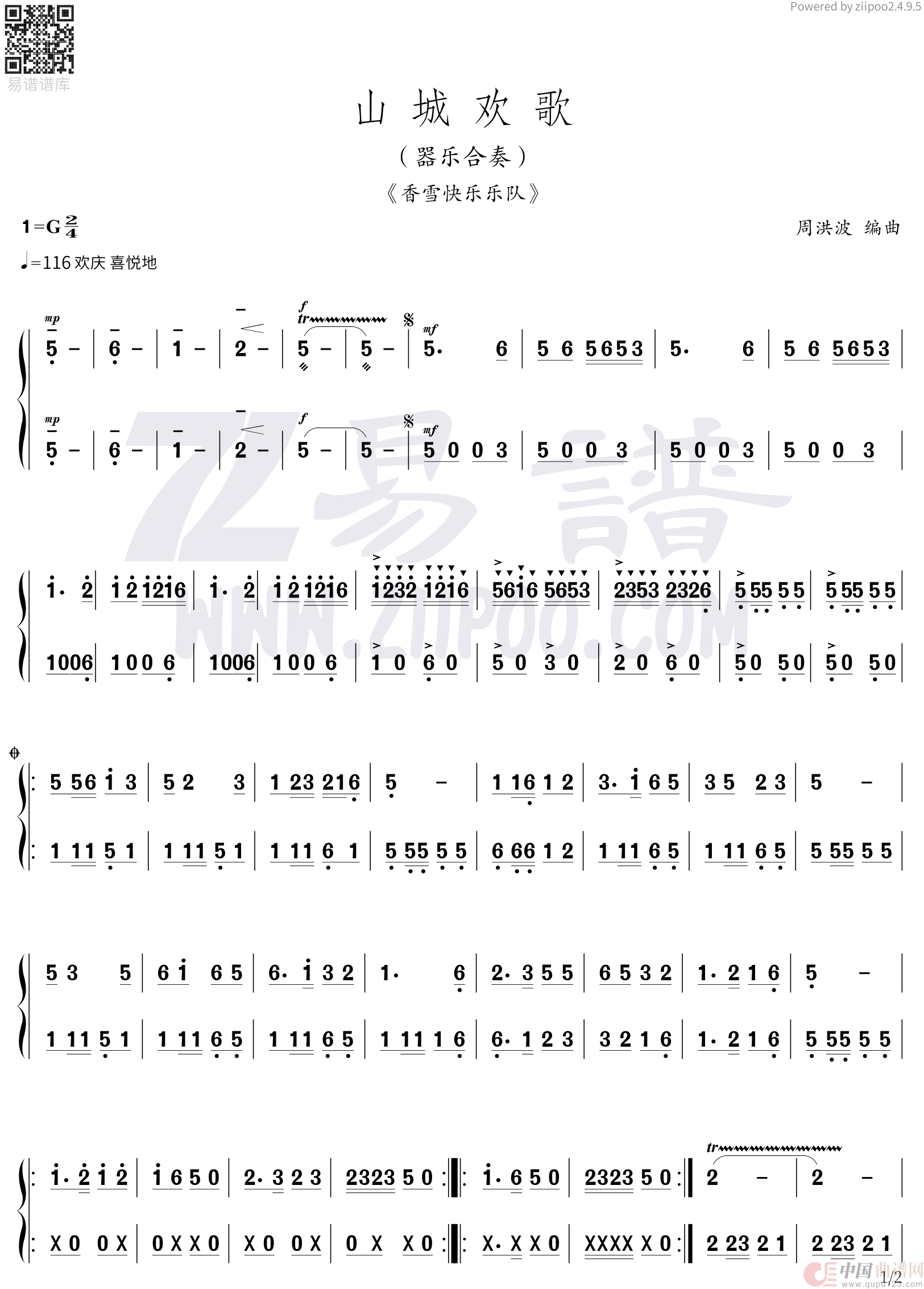 提示:在曲谱图片上单击右键,选择“图片另存为...”即可将曲谱保存到您的电脑中,打印时候可将图片插入到WORD中,调整合适大小打印即可。