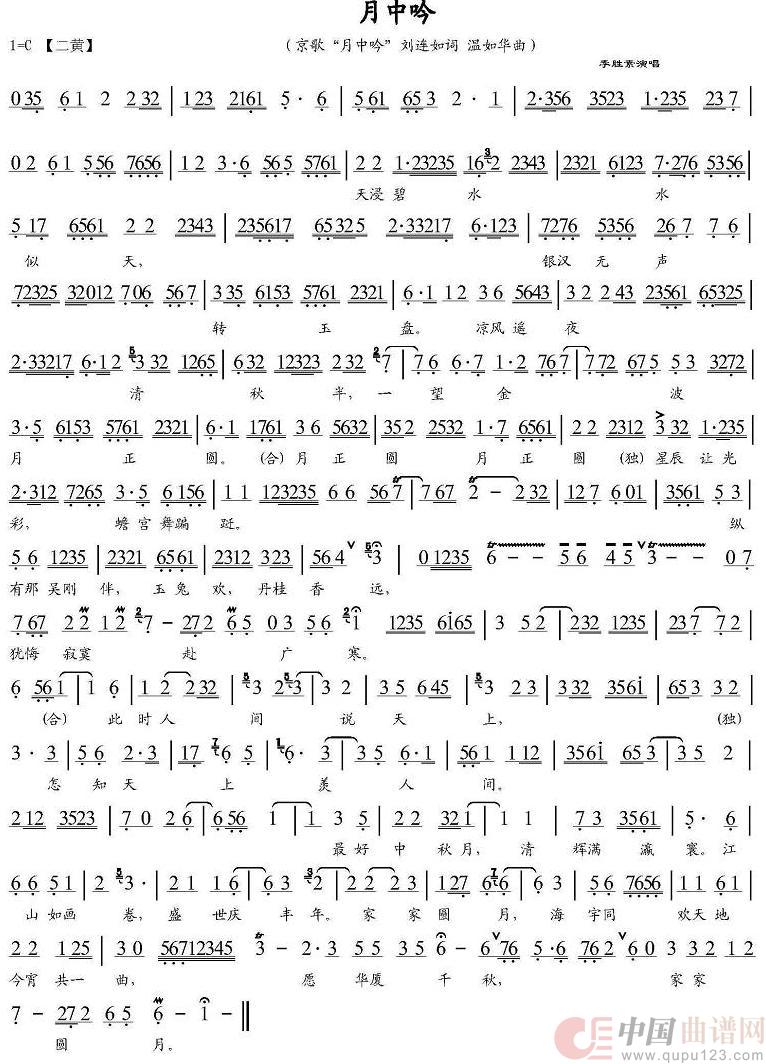 关于《月中吟》曲谱的评论