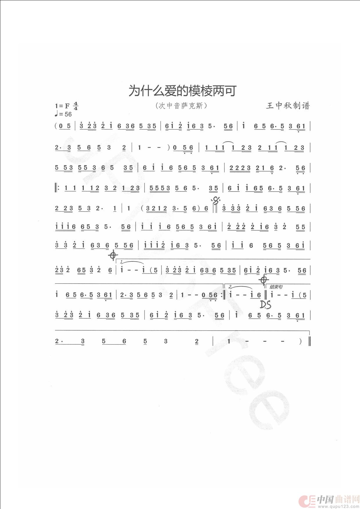 提示:在曲谱图片上单击右键,选择“图片另存为...”即可将曲谱保存到您的电脑中,打印时候可将图片插入到WORD中,调整合适大小打印即可。