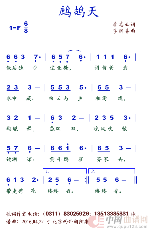 提示:在曲谱图片上单击右键,选择“图片另存为...”即可将曲谱保存到您的电脑中,打印时候可将图片插入到WORD中,调整合适大小打印即可。